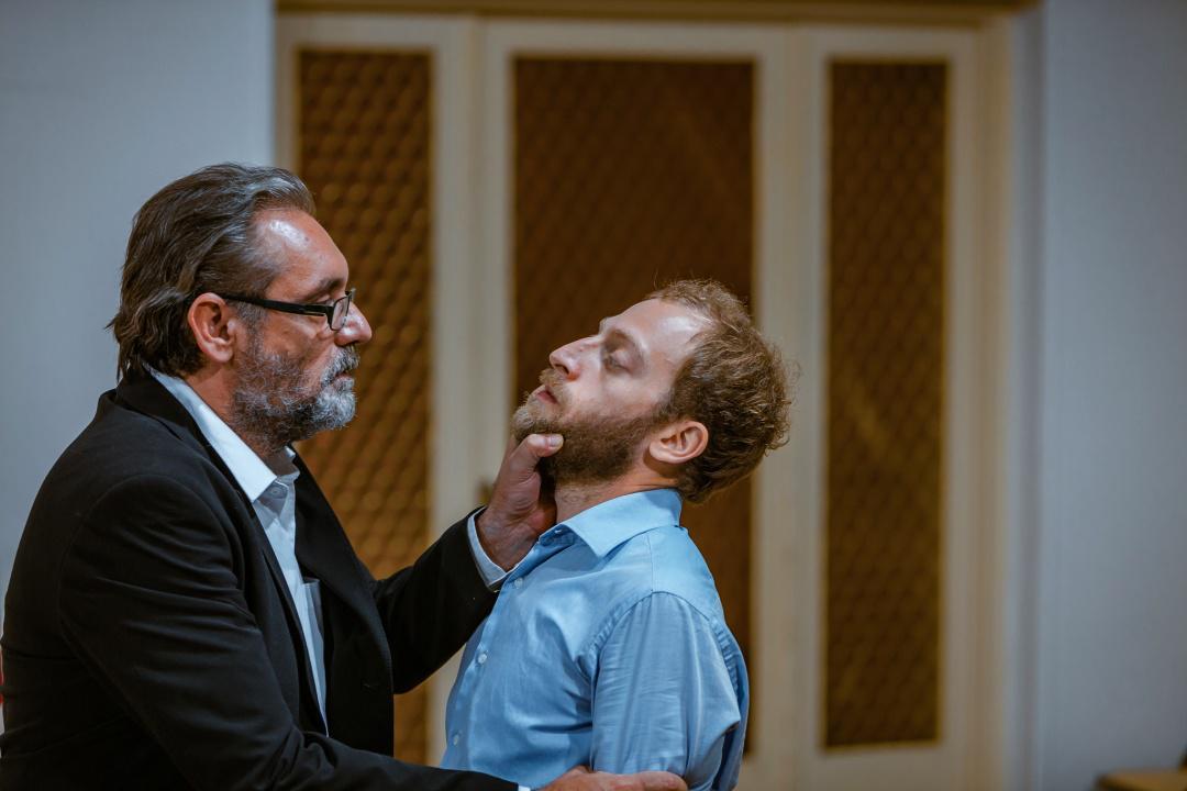 Και αυτήν την εκτρωματική παρουσία ερμήνευσε με τον πιο υπόγειο και εσωτερικό τρόπο ο Παύλος Δανελάτος. Το έξοχο αποκείμενο του Δανελάτου δρα επί των ορίων του, που δεν φείδεται αίματος μέχρι ο πόνος να μετατραπεί σε γλώσσα, διαφεύγουσα πάντα, έτσι όπως κινείται και ο ίδιος ως απόλυτη εξουσία. Και αυτό είναι που γοητεύει στον υποκριτικό άθλο του Δανελάτου. Η αιμοδιψής ξενότητα του ήρωά του, που εκφράζεται ως κατάσταση αναπόδραστη και αδιαμφισβήτητη. Χωρίς κορώνες. Μόνο ως παραφροσύνη με σιγαστήρα. Ο πατέρας του Δανελάτου είναι το αποσυνάγωγο πλάσμα που χρειάζεται τους πάσχοντες αποδέκτες του για να υπάρξει και να πάρει απόλαυση. Στο αποκλεισμένο τοπίο της διαστροφής που έστησε ο Νίκας, ο πατέρας του Δανελάτου χρεώνεται τις ιδιότητες του Θεού με τάλαντο υποκριτικής γνώσης και εμβάθυνσης. Επικυρώνει ανά πάσα στιγμή την πρωτοκαθεδρία του ρόλου του και την προσφέρει στους συναδέλφους του ως ακριβή επικοινωνία, για να αρθεί η όλη παράσταση στο ύψος της. Πρόκειται με άλλα λόγια για μια ερμηνεία που ορίζει την εκλεκτή αρμονία, ως συνεκτικό δεσμό με τους άλλους ηθοποιούς εν μέσω οδυνηρής σωματικότητας του λόγου.