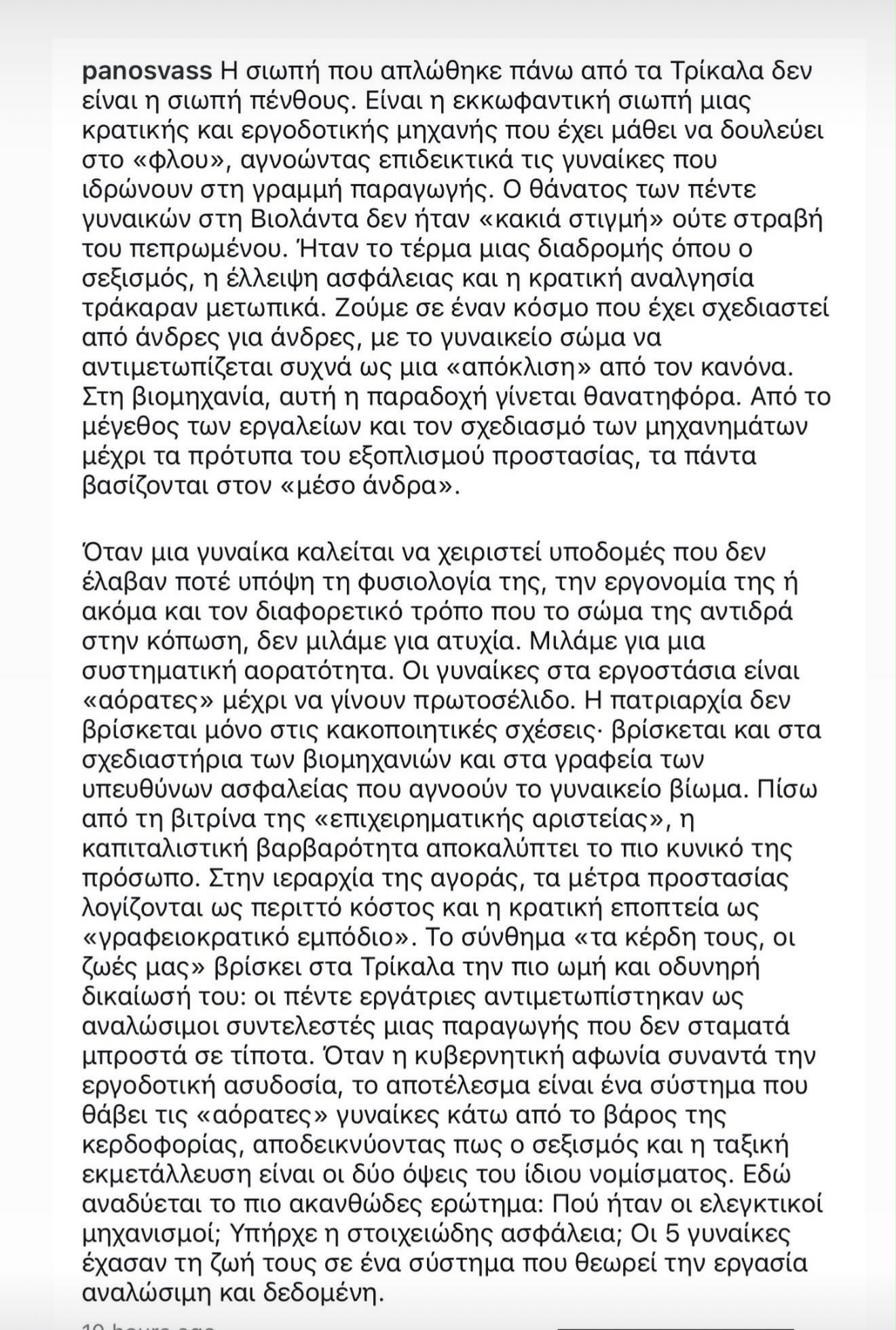 Με αφορμή το τραγικό συμβάν στα Τρίκαλα ήθελα να σε ρωτήσω, γι΄αυτές τις 5 γυναίκες εργάτριες που έχασαν τη ζωή τους, την ώρα της δουλειάς…