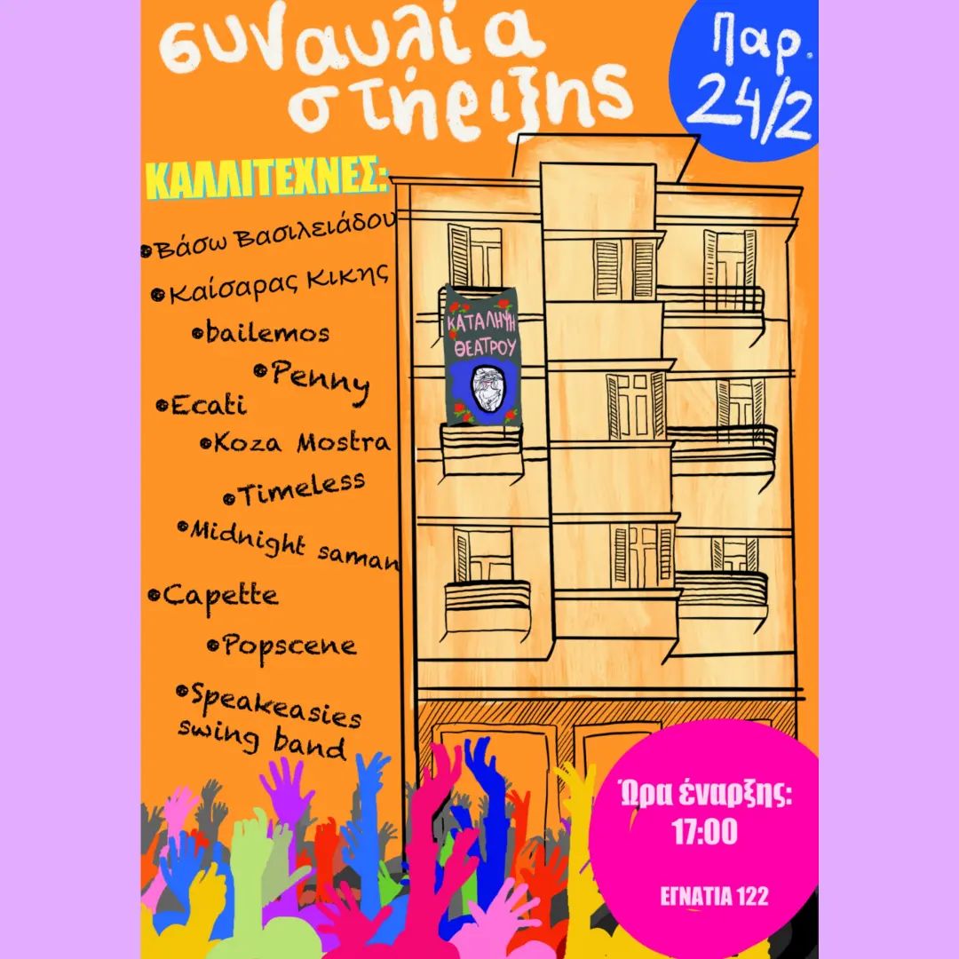 Οι ίδιοι στηρίζουν, όπως λένε, τον αγώνα των καταλήψεων της Δραματικής Σχολής Εθνικού Θεάτρου, του Θεάτρου Τσίλλερ, του Θεάτρου Rex, της Δραματικής Σχολής του ΚΘΒΕ, του κτηρίου του Βασιλικού Θεάτρου αλλά και των άλλων σχολών.