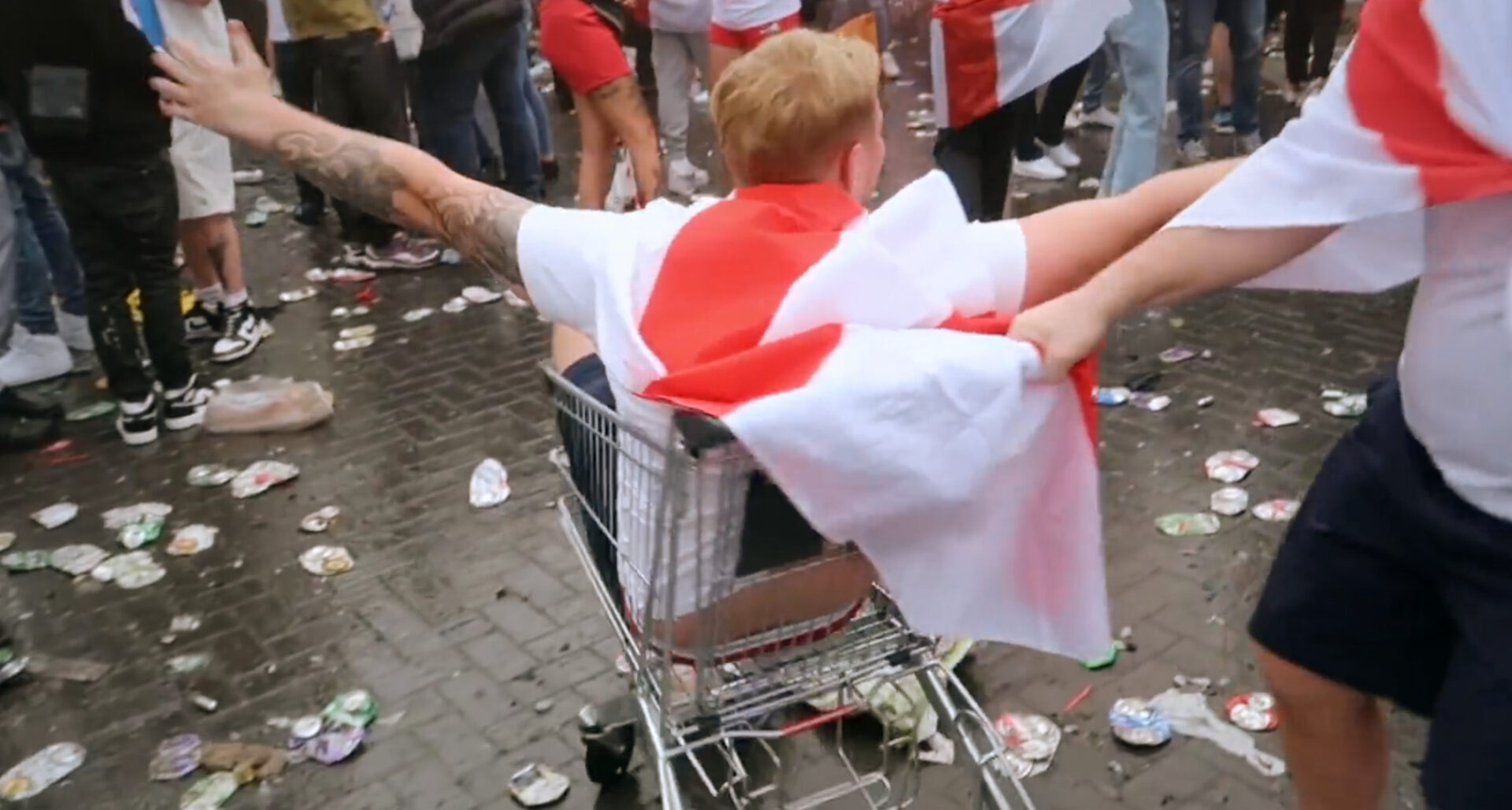 Με την Αγγλία να διεκδικεί επιτέλους έναν μεγάλο τίτλο, 6.000 ποδοσφαιρόφιλοι χωρίς εισιτήριο μπαίνουν μέσα στο Γουέμπλεϊ, αφήνοντας πίσω τους την καταστροφή.