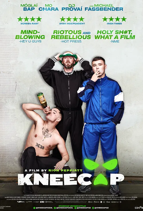 Σύνοψη Στο Μπέλφαστ μετά την εποχή των Troubles, το ταραχώδες ραπ τρίο KNEECAP κάνει την εμφάνισή του και θέτει το υπόβαθρο για την αναβίωση της ιρλανδικής γλώσσας ενάντια στο κατεστημένο. Τα μέλη της μπάντας γίνονται πολιτικά σύμβολα και δίνουν μια προκλητική φωνή στην ανήσυχη νεολαία της Ιρλανδίας. Καθώς αγωνίζονται να αφήσουν το στίγμα τους στον κόσμο και οι πιέσεις των οικογενειών τους απειλούν να δώσουν άδοξο τέλος στα όνειρά τους, το τρίο υφαίνει μια αφήγηση που ξεπερνά τη μουσική.