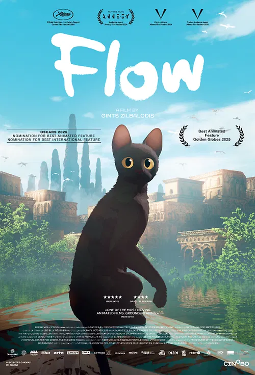 Μια από τις ομορφότερες ταινίες animation που έχουν γυριστεί ποτέ, το Flow υπόσχεται να παρασύρει όλη την οικογένεια στην πλωτή περιπέτεια των τετράποδων ηρώων του. Ωδή στη φύση, προειδοποίηση για την κλιματική αλλαγή, αγνή περιπετειώδης διασκέδαση. Τίποτα δεν λείπει από αυτό το κομψοτέχνημα που θα συγκινήσει μικρούς και μεγάλους.