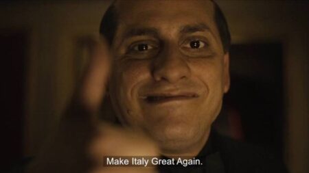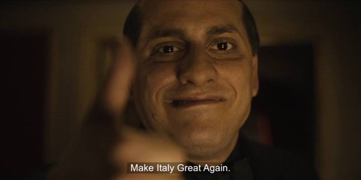 Σε μια στιγμή του 4ου επεισοδίου της αριστουργηματικής σειράς M. Son of the Century για την άνοδο και εδραίωση του Μπενίτο Μουσολίνι στην εξουσία, ο Μουσολίνι, που μόλις έχει οριστεί πρωθυπουργός από τον βασιλιά, γυρίζει στην κάμερα και κλείνοντας το μάτι στον θεατή του λέει “Make Italy Great Again”.