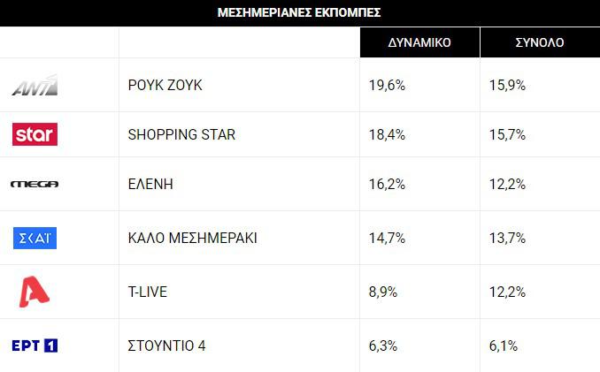 Τηλεθέαση Μεσημεριανής Ζώνης