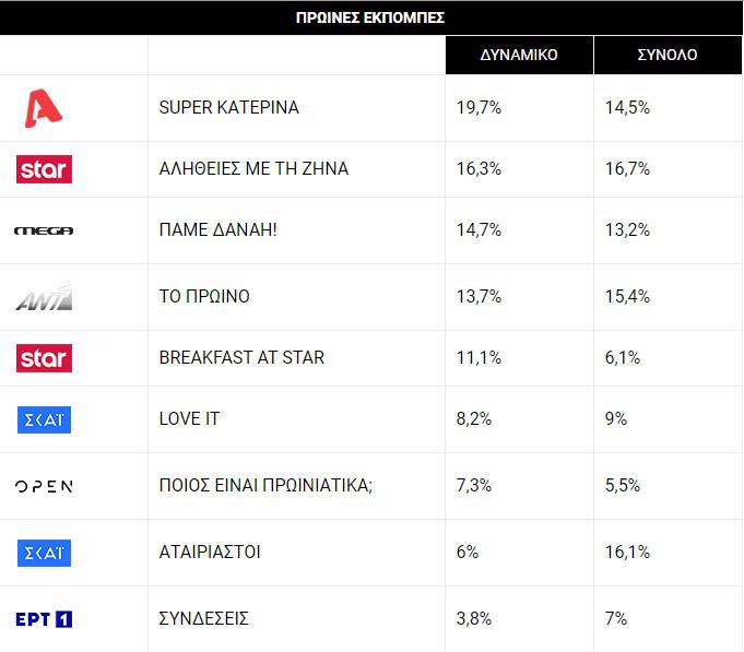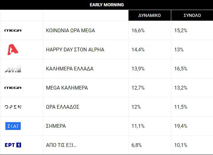 - ANT1 – Πρωινοί τύποι – 6,2%