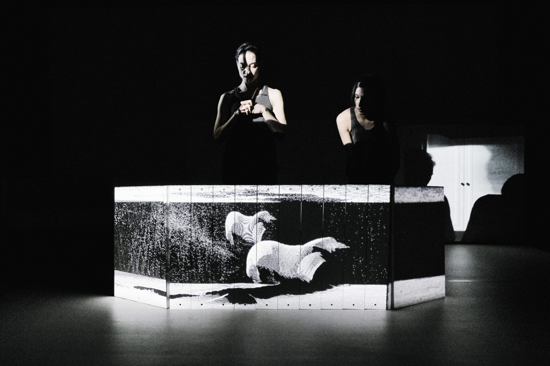 Μέσα από προβολές και τεχνολογία mapping, τα σκηνικά ζωντανεύουν με υφές και εικόνες τόσο από φωτογραφίες, όσο και από animation που έχει προκύψει από μια τεχνική που αναπτύσσεται, που χρησιμοποιεί κάμερες βάθους και νέφη σημείων προκειμένου να δημιουργηθούν μορφές, τόσο ανθρώπινες όσο και αφηρημένες, που έχουν “κληρονομήσει” την κίνησή τους από χορευτές. Αυτή η τεχνική επιτρέπει στους χορευτές να αναπτύξουν τη χορογραφία και στα οπτικά μέσα, δημιουργώντας μία συγκλονιστική εμπειρία σε όσους βρεθούν στον χώρο.