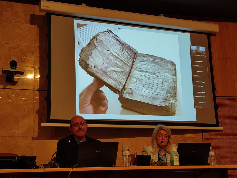 Η συντήρηση έγινε σε περίπου εκατό χειρόγραφα, με βάση τα σύγχρονα πρότυπα. «Προσπαθούμε -στο μέτρο του δυνατού, να προσθέτουμε όσο λιγότερα πράγματα γίνεται πάνω σε ένα χειρόγραφο, γιατί η εμπειρία μας έδειξε ότι πολλά από τα υλικά με τα οποία θεωρούμε ότι φτιάξαμε ένα χειρόγραφο και το σώσαμε σε βάθος χρόνου, δημιουργούν πολύ περισσότερα προβλήματα. Για παράδειγμα υπάρχουν οι ανθρωπογενείς φθορές, μία εκ των οποίων είναι η επέμβαση με σεϊλοτέιπ, το οποίο με τον καιρό οξειδώνεται και περνάει η κόλλα μέσα στο χαρτί», τόνισε ο κ. Μπουδαλής.