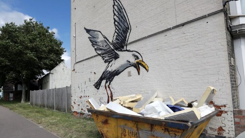 Ο Banksy είχε διαλέξει τον τοίχο του με προσοχή. Οι επισκέπτες που έφταναν με το τρένο έβλεπαν αυτή την ευφυή εικαστική παρέμβαση που ήταν ταυτόχρονα μια προειδοποίηση και κάτι όμορφο. Ο Γλάρος του Λόουεστοφτ ήταν μέρος της εκστρατείας του Banksy με τίτλο Great British Staycation, της μετα-κορονοϊού καμπάνιας του για να ανεβάσει το ηθικό ενόψει ενός καλοκαιριού που θα περάσει κανείς στο Ηνωμένο Βασίλειο.