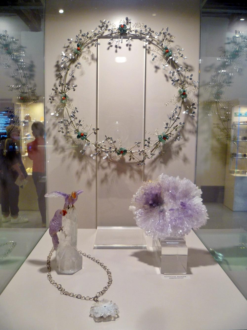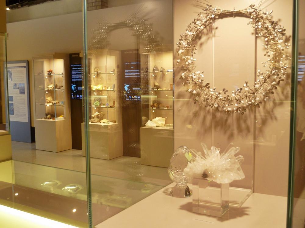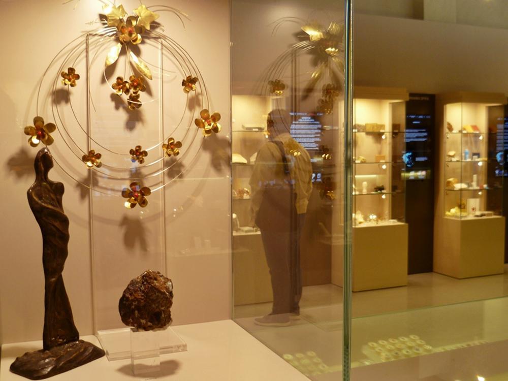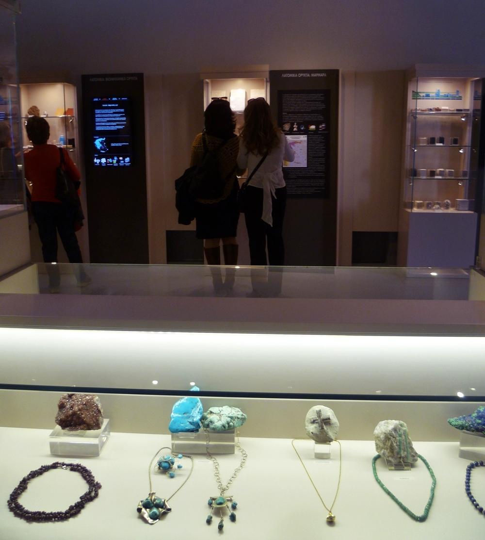 «Επίσης, υπάρχει ένα τμήμα που λέγεται «Ορυκτά και Τέχνη», που είναι από την προσωπική συλλογή της κ. Δήμου, όπου υπάρχει η πρώτη ύλη, το ορυκτό, και το κόσμημα, το οποίο είναι επίσης κατασκευασμένο από την κ. Δήμου. Άρα έχει λίγο και την καλλιτεχνική πλευρά αυτή η έκθεση», σημειώνει για τα ενδιαφέροντα εκθέματα γλυπτών και κοσμημάτων που φιλοξενούνται. Τέλος, παράλληλα με τα εκθέματα, σε ξεχωριστή αίθουσα του Μουσείου γίνεται προβολή μιας 50λεπτης ταινίας γύρω από την θεματική της έκθεσης.