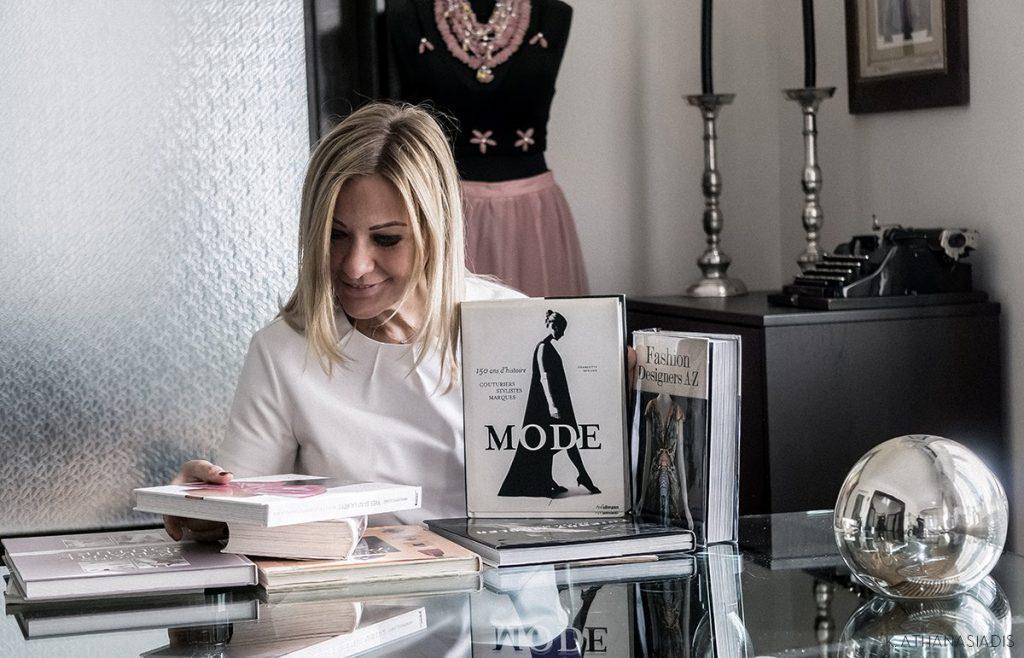 Κάπως έτσι συνάντησα την Στελίνα Τρωιάνου στο γραφείο της. Το δημιουργικό “οχυρό” της στον 5ο όροφο του επιβλητικού Ολύμπιον. Άνετη, άμεση και με αβίαστη αισθητική να αποπνέεται σε κάθε λεπτομέρεια γύρω μας, ξεκίνησε την περιήγησή μας στα making of του Sur Mesure. Μόλις επέστρεψε από Παρίσι όπου βρέθηκε για μία μόλις ημέρα με σκοπό να ψάξει στα βιβλιοπωλεία και να εφοδιαστεί με τις κατάλληλες εκδόσεις μόδας που θα βοηθούσαν στο στήσιμο της έκθεσης.