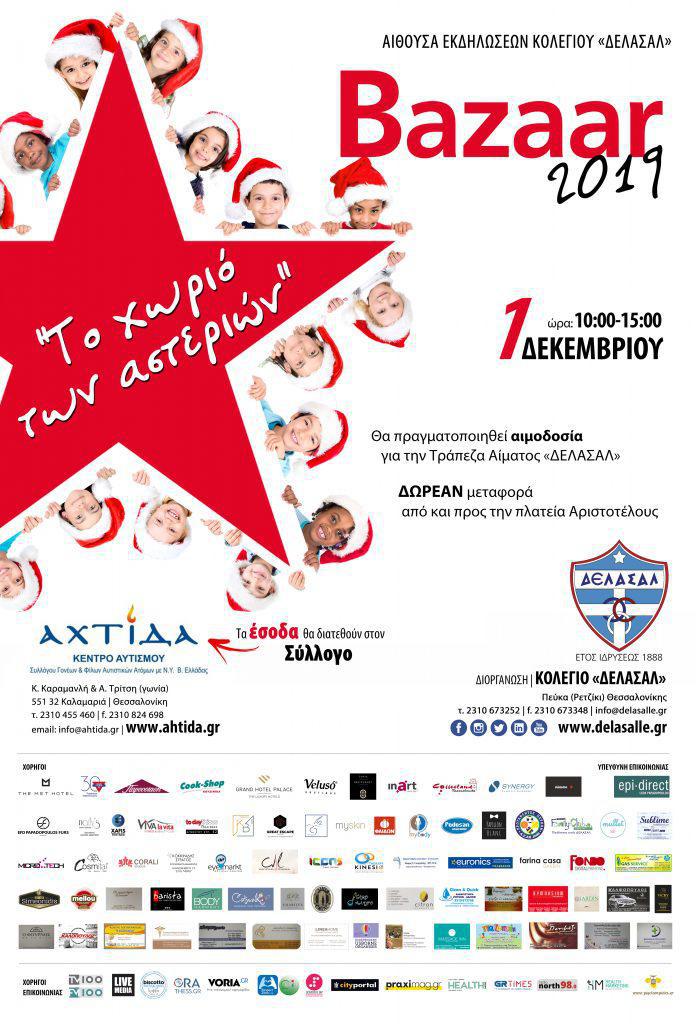 Χειροποίητες δημιουργίες των μαθητών του Κολεγίου μας, γαστρονομικές λιχουδιές και χριστουγεννιάτικα στολίδια, προϊόντα από τον Σύλλογο «Αχτίδα», παιχνίδια και εργαστήρια για τα παιδιά, εθελοντικές δράσεις και αιμοδοσία περιλαμβάνει το φετινό bazaar του Κολεγίου «ΔΕΛΑΣΑΛ». Τα έσοδα της φιλανθρωπικής εκδήλωσης, με τίτλο «Το χωριό των αστεριών», θα διατεθούν στον Σύλλογο «Αχτίδα».