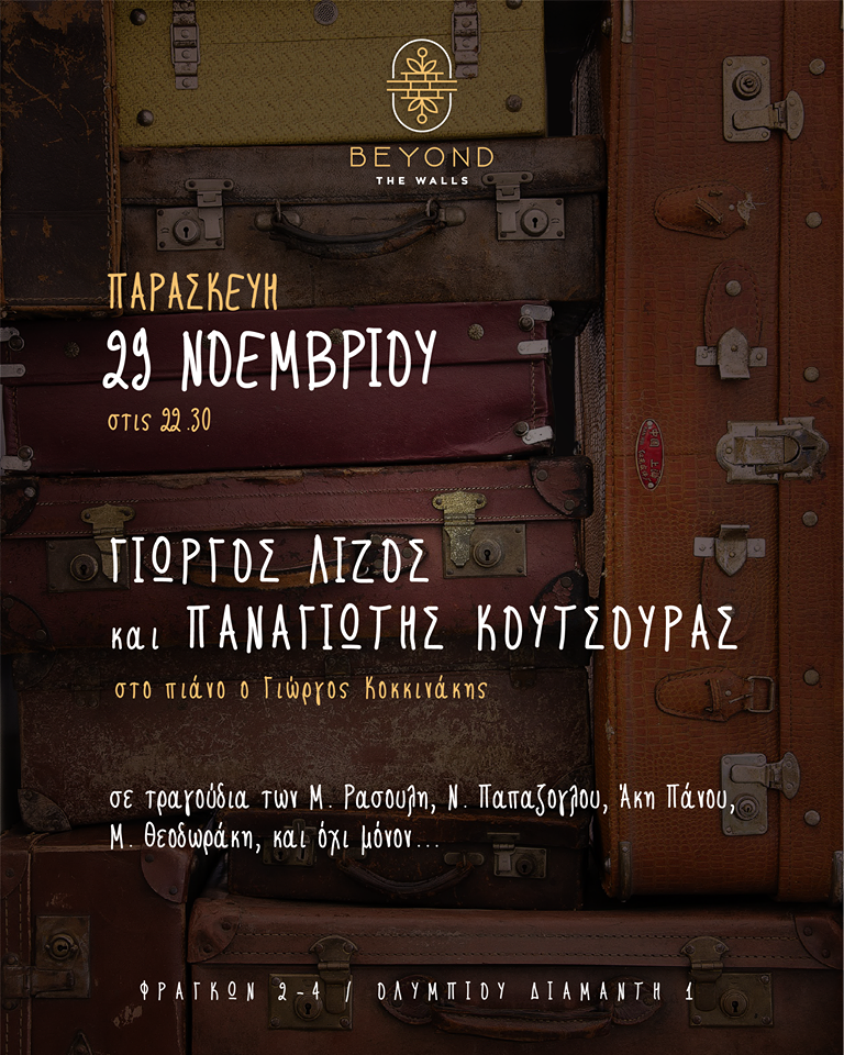 *Την Παρασκευή, 29 Νοεμβρίου, στις 10.30, Βeyond the Walls, Φράγκων 2 – 4, Κρατήσεις 2310 545 400