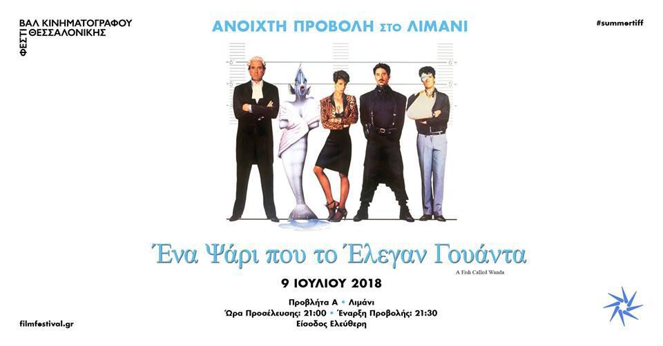 *#summertiff – Ανοιχτή προβολή Ένα ψάρι που το έλεγαν Γουάντα, Δευτέρα 9 Ιουλίου 2018, 21:30, Λιμάνι Θεσσαλονίκης, είσοδος ελεύθερη
