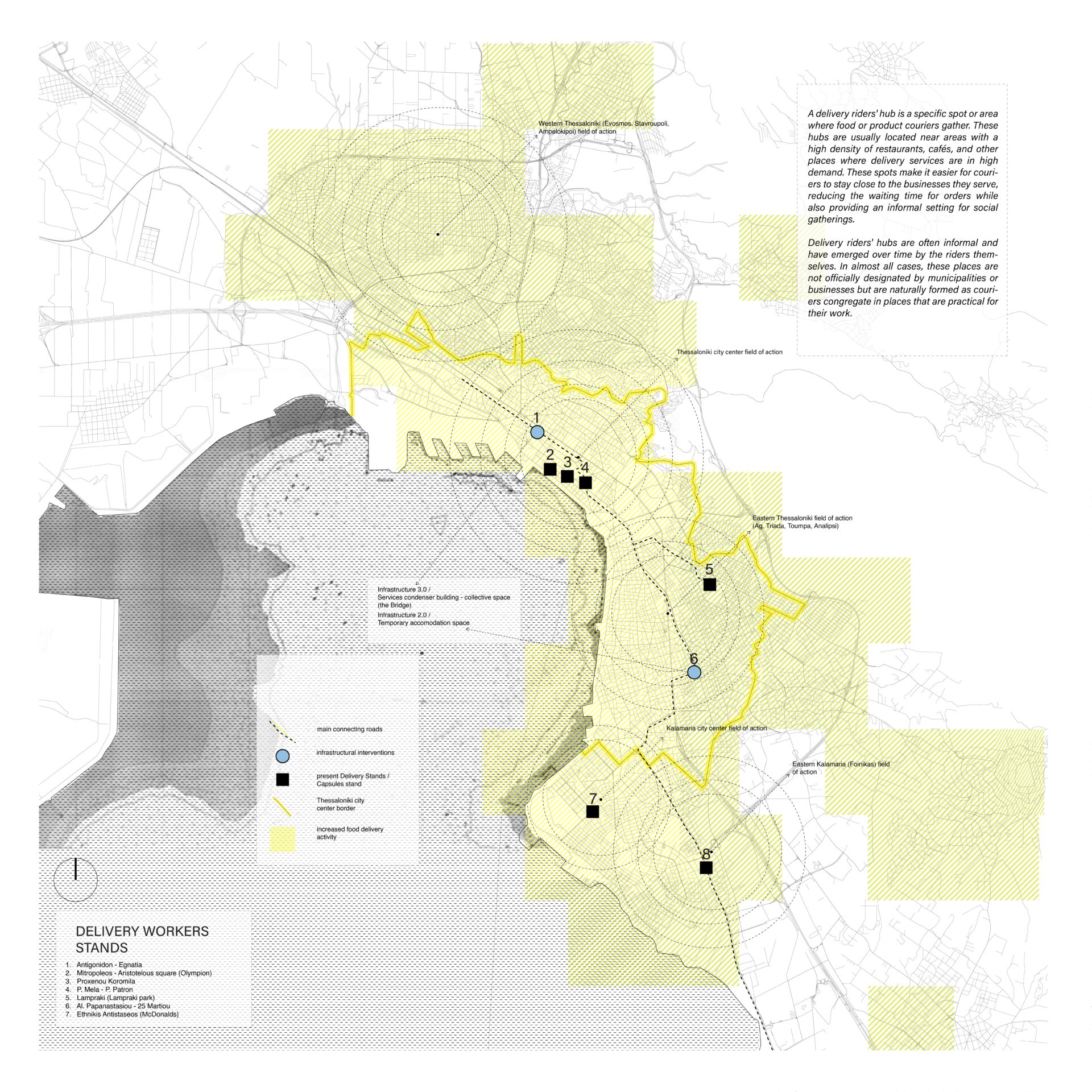 Πριν μερικούς μήνες, ο Μάριος Γέροντας, νέος απόφοιτος Αρχιτεκτονικής στο ΑΠΘ, αποφάσισε να αξιοποιήσει την πτυχιακή του εργασία για να ερευνήσει πώς η καθημερινότητα των διανομέων στο μεροκάματο θα μπορούσε να γίνει καλύτερη. Κάπως έτσι, με τη σύμφωνη γνώμη του επιβλέποντά του, επίκουρου καθηγητή Πλάτωνα Ησαΐα, γεννήθηκε το project με το όνομα «Αστικές Καβάτζες» (ή “Street Runners” στα αγγλικά, αναφερόμενο στους ανθρώπους που βρίσκονται σε κίνηση όλη μέρα στους δρόμους, για να μας εξυπηρετήσουν).