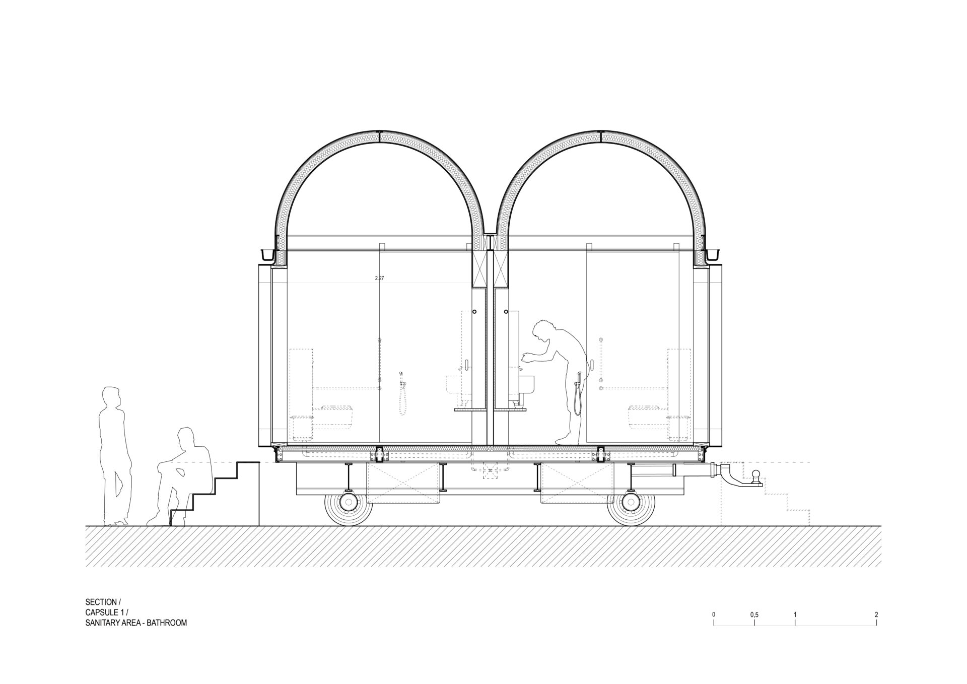 Σε πρώτο επίπεδο, προβλέπονται «αστικές κάψουλες» μικρής κλίμακας με ρόδες, οι οποίες θα είναι ρυμουλκούμενες και θα μπορούν να τοποθετηθούν σε κεντρικές «πιάτσες» όπου συγκεντρώνονται διανομείς. Σε αυτές χωρούν πολύ βασικές εγκαταστάσεις, όπως τουαλέτες, σταθμοί φόρτισης για ηλεκτρικά σκούτερ ή ντουλαπάκια για προσωπικά αντικείμενα. Το μικρό τους μέγεθος θα επιτρέπει τη μεταφορά τους από «πιάτσα» σε «πιάτσα» ανάλογα με τις τρέχουσες ανάγκες.