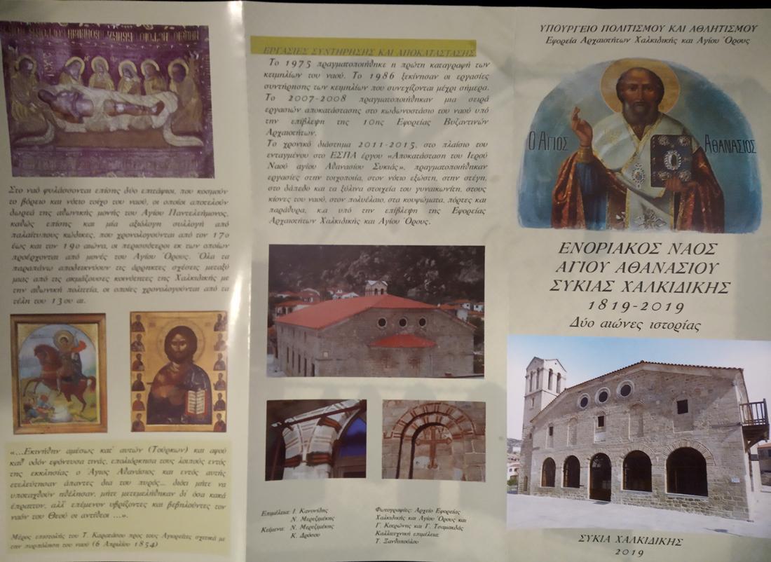 Στο πλαίσιο αυτό η Εφορεία Αρχαιοτήτων Χαλκιδικής και Αγίου Όρους σε συνεργασία με την Μητρόπολη Κασσανδρείας και το Εκκλησιαστικό Συμβούλιο του Ναού, εξέδωσε τρίπτυχο φυλλάδιο με την ιστορική αναδρομή του ναού – μνημείου.
