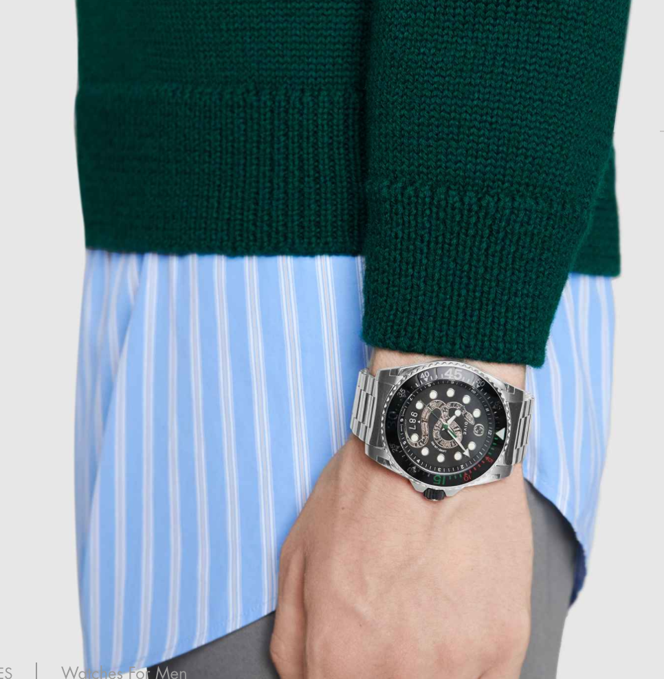 Σχεδιασμένο και «εμπνευσμένο από την εξέχουσα ομάδα του League of Legends της Fnatic» το ρολόι Gucci Dive κυκλοφορεί στα χρώματα της ομάδας των gamers, πορτοκαλί και μαύρο και φέρει επίσης το λογότυπό τους. Το ρολόι κυκλοφορεί σε 100 κομμάτια και για να το αποκτήσουν οι θαυμαστές της ομάδας (η Fnatic μπορεί να υπερηφανεύεται για περίπου 15 εκατομμύρια) η τιμή είναι 1.150 αγγλικές λίρες.