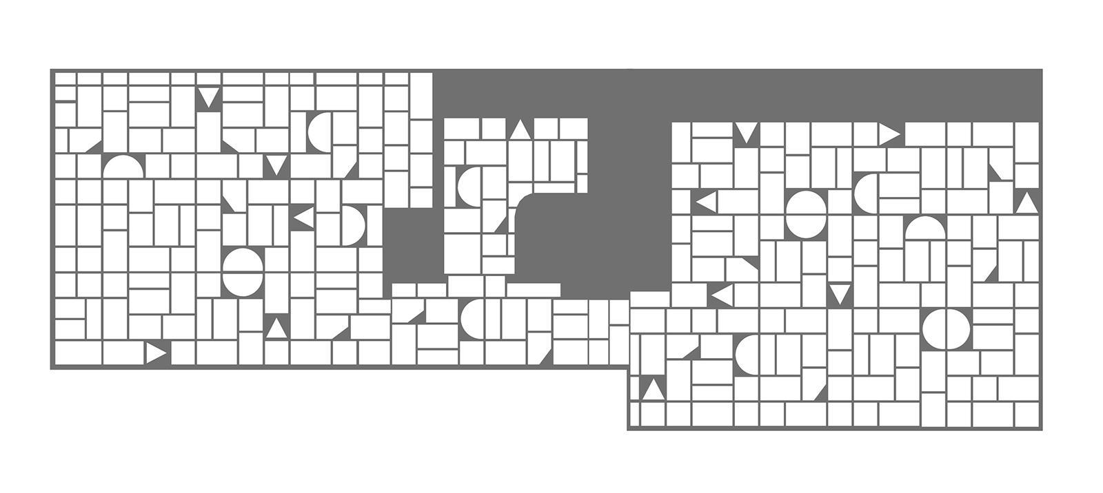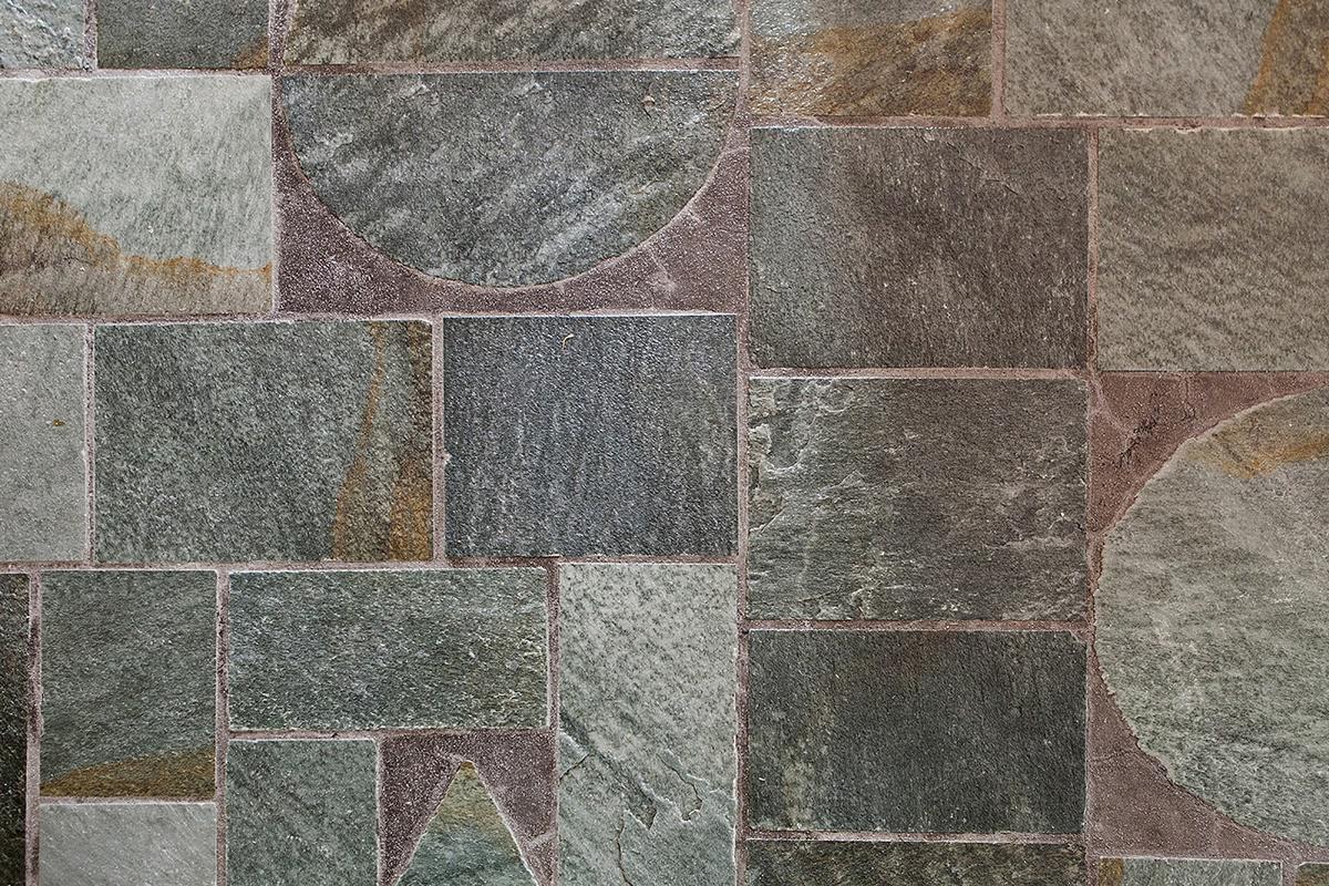 «Όλα τα παραπάνω συνδυάστηκαν με γραμμικές επιφάνειες που δίνουν μία συνέχεια στους όγκους καθώς επίσης, με το δάπεδο από πέτρινες πλάκες κομμένες και τοποθετημένες βάσει σχεδίου σε γεωμετρικά σχήματα».