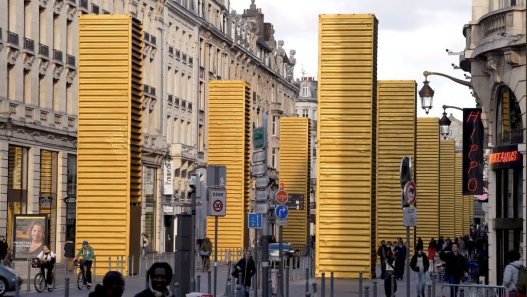 Αυτοί οι Χρυσοί Μονόλιθοι, που μεταμορφώνουν έναν από τους κεντρικούς δρόμους της πόλης, λειτουργούν όχι μόνο ως σύμβολα δύναμης, αλλά και ως σχόλιο πάνω στη βιομηχανία.