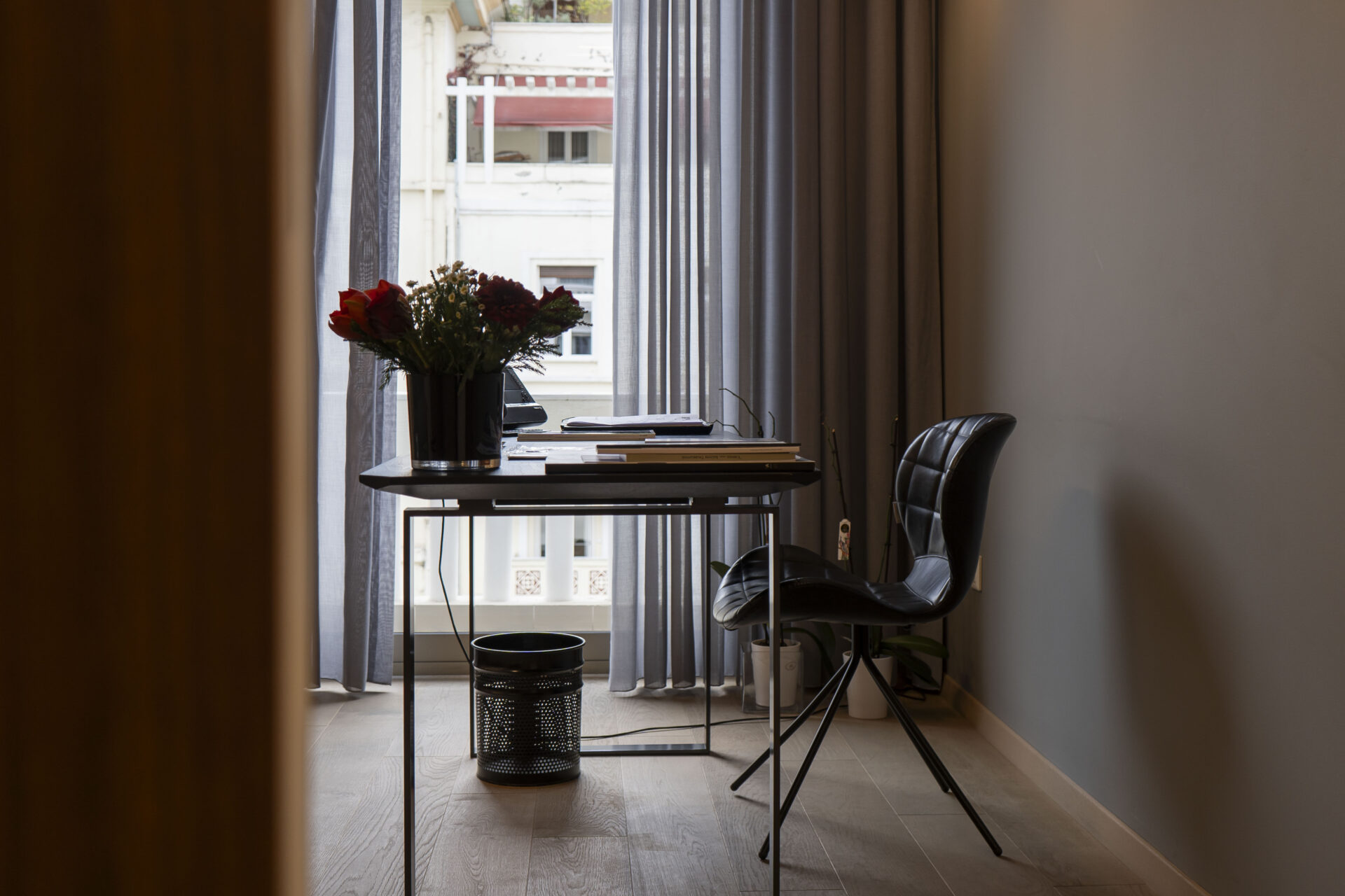 Βάσει του προεδρικού διατάγματος του 1983 τα κτίρια που βρίσκονται επί της οδού Αριστοτέλους, έχουν κηρυχθεί διατηρητέα και ένας από τους κανόνες αυτών είναι τα λευκά ξύλινα κουφώματα, έτσι κι αυτό το διαμέρισμα τα τηρεί.