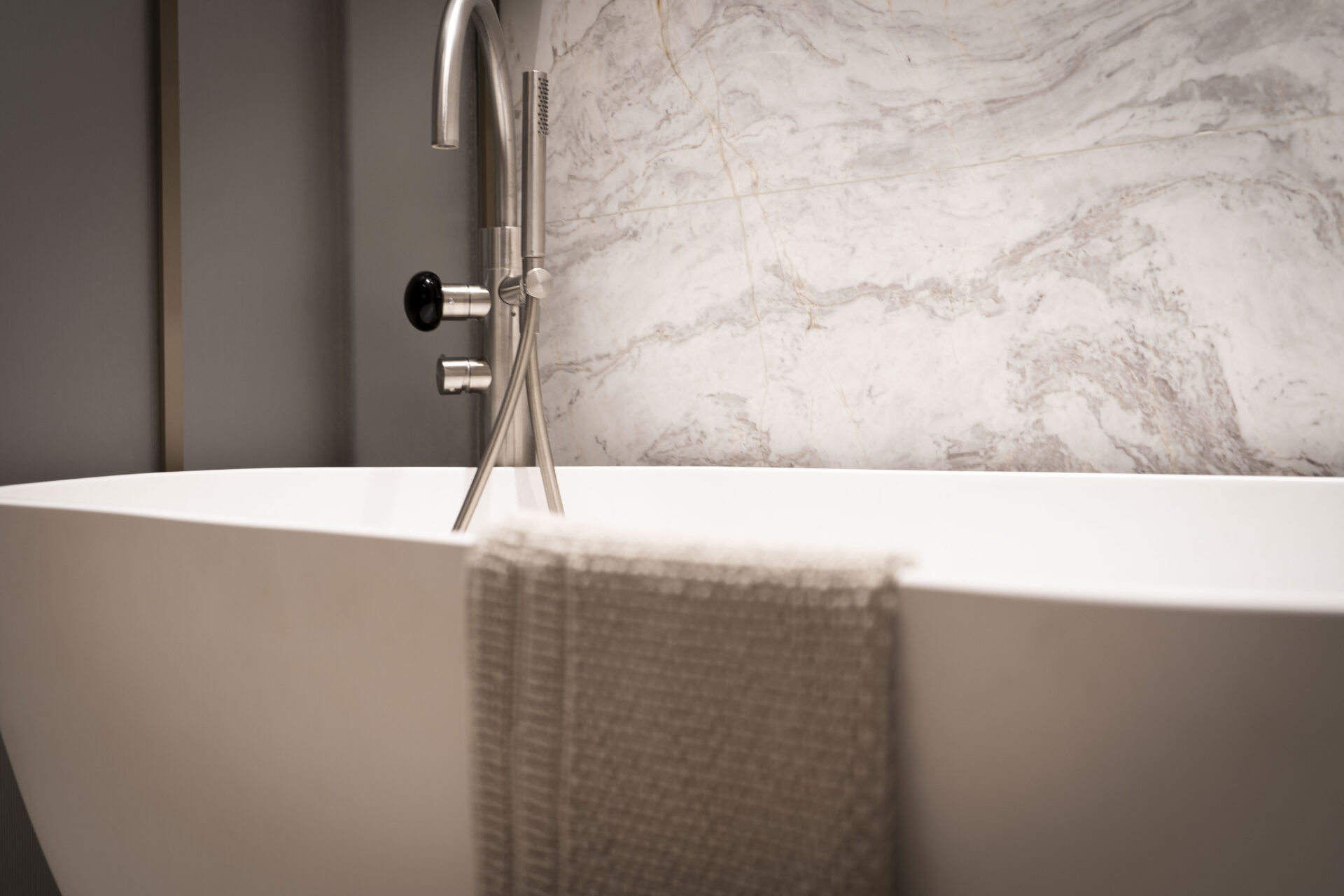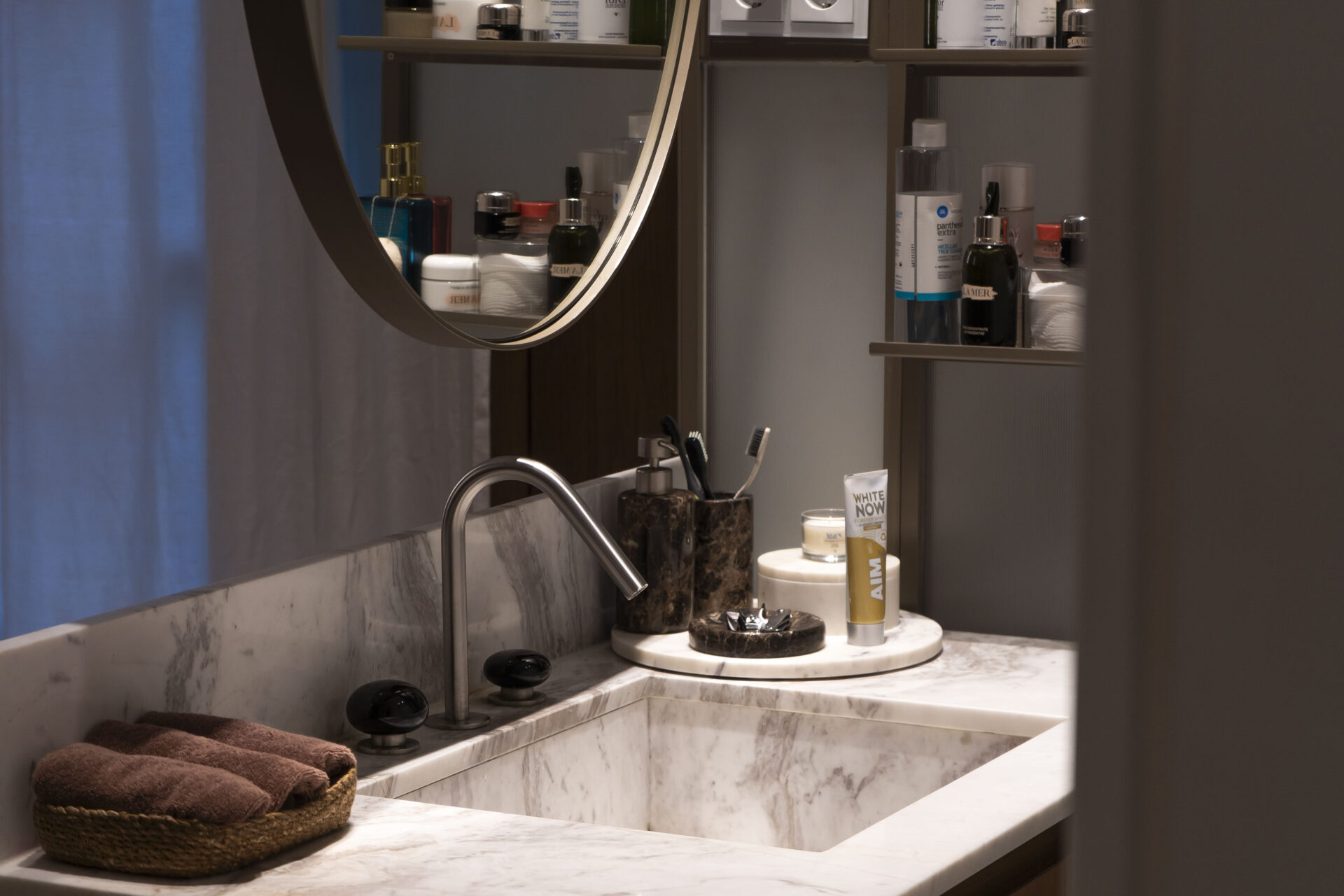 Το δεύτερο παιδικό υπνοδωμάτιο ακολουθεί την ίδια τακτική με το πρώτο, το γραφείο και η ντουλάπα αποτελείται από ένα ενιαίο κομμάτι ξύλου επίσης custommade, δημιουργώντας μία βιβλιοθήκη εναλλακτικού χώρου. Στο τρίτο υπνοδωμάτιο κυριαρχεί το ξύλο και υπάρχει και ένα ιδιωτικό minimal ανοιχτό μπάνιο στο οποίο επικρατεί το λευκό μάρμαρο. Υπάρχει μία συρώμενη κατασκευή η οποία απομονώνει το ντους και την λεκάνη. Η ανάγκη της ιδιοκτήτριας για ένα βεστιάριο οδήγησε στον σχεδιασμό ενός βεστιάριου με σκάλα από γυαλί και μέταλλο.
