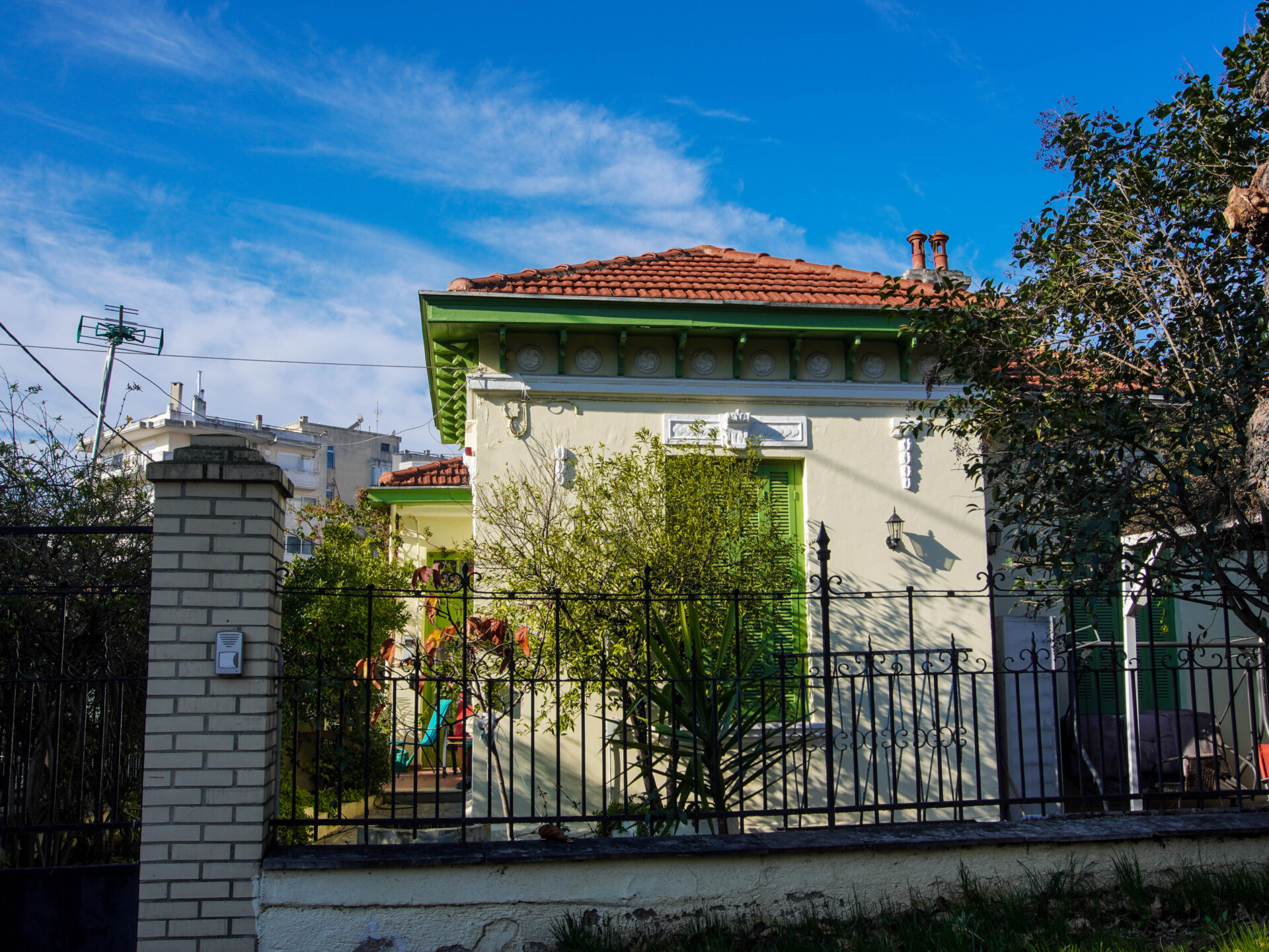 Διώροφο δείγμα όψιμου κλασικισμού με αναγεννησιακά στοιχεία, ραβδωτές κολώνες με επίκρανα που χωρίζουν την όψη σε τρία τμήματα, από τα οποία το μεσαίο φέρει στο κέντρο του ορόφου μπαλκόνι, που υποβαστάζουν διακοσμητικά λεοντόμορφα φουρούσια, ενώ αντίστοιχα στο ισόγειο τέσσερεις κολώνες με κυκλική διατομή ορίζουν την κεντρική είσοδο του κτηρίου. Πάνω από την ταινία που διαχωρίζει το ισόγειο από τον όροφο βρίσκονται μικρά ορθογώνια ανοίγματα με σιδεριές Αrt Νouveau και προεξέχον γείσο, αντίστοιχα δε σ’αυτά είναι τα ανοίγματα του ορόφου, που έχουν τοξωτή διάρθρωση του ανωφλίου με κεντρικό διακοσμητικό κλειδί και οριζόντιο περβάζι που υποβαστάζεται από φουρούσια. Το κτίριο τελειώνει με επιστήλιο και προεξέχων γείσο που στηρίζεται σε διακοσμητικά σχηματικά φουρούσια (ΥΠΠΟ)