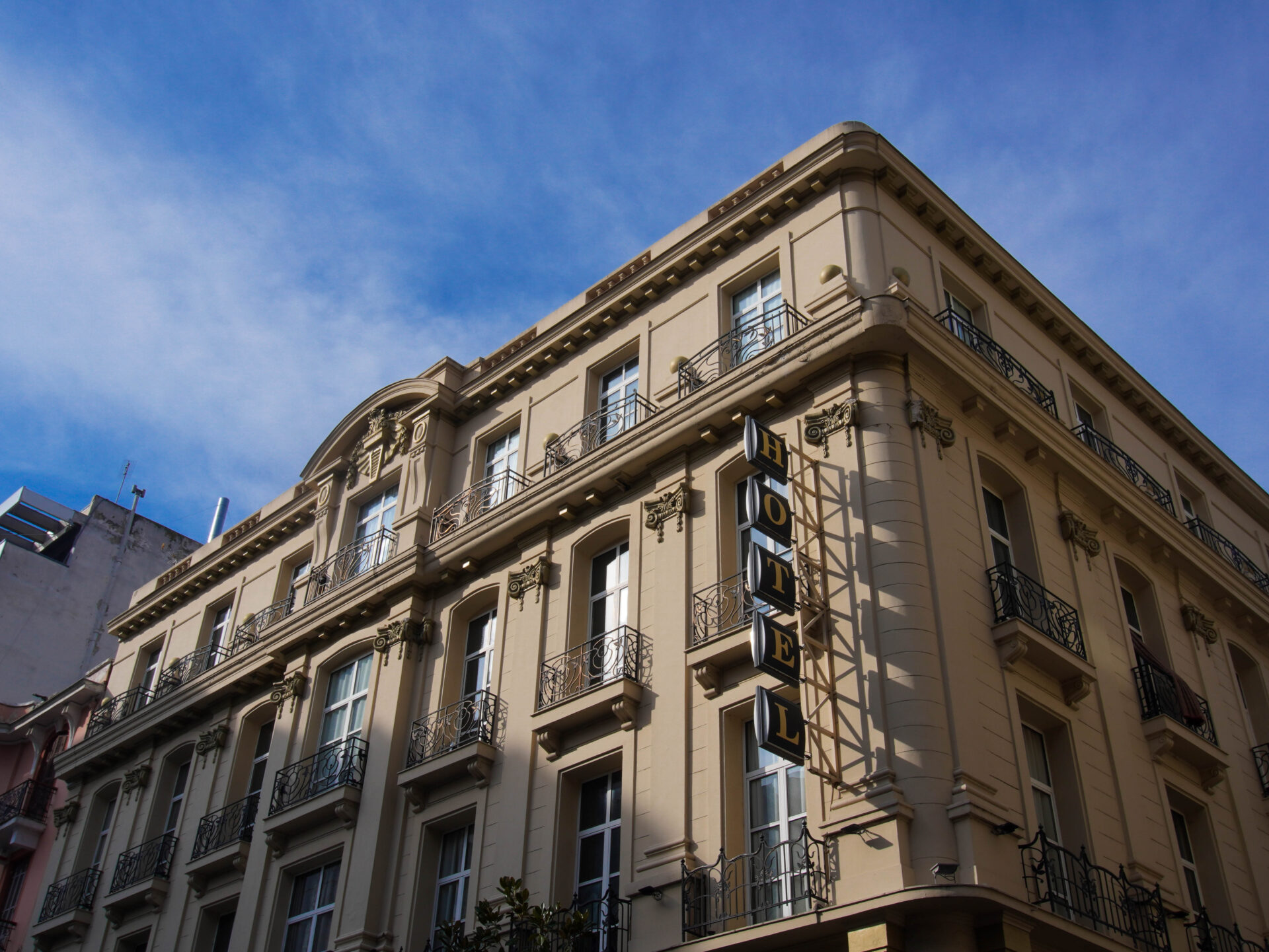 Χτίστηκε το 1929, στο οικόπεδο 20/6 της πυρίκαυστης ζώνης, σε σχέδια του Jacques Moshe, σε μια περιοχή με υψηλό πρεστίζ που φιλοξένησε και άλλες ξενοδοχειακές μονάδες εκείνη την εποχή. Ιδιοκτήτες ήταν οι αδελφοί Δαβίδ και Ιακώβ Γιομτώβ Μπενβενίστε, έμποροι. Η αρχική του χρήση ήταν ξενοδοχείο με το όνομα Continental και η ίδια παραμένει μέχρι και σήμερα. Ανήκε στα ξενοδοχεία ‘Α κατηγορίας μαζί με τα Βιέννη, Μεγάλη Βρετανία, Μινέρβα, Άτλας στην Εγνατία και Νέα Μητρόπολις στην Συγγρού. Χαρακτηρίστηκε διατηρητέο το 1983 αλλά το 1998, η απόφαση τροποποιήθηκε περιορίζοντας την διατήρηση μόνο στις όψεις του κτιρίου, με αποτέλεσμα αυτές να είναι το μοναδικό αυθεντικό κομμάτι του αρχικού κτιρίου. Βρίσκεται στην συμβολή των οδών Κομνηνών και Καλαποθάκη, διαγώνια από το ξενοδοχείο Λουξεμβούργο.