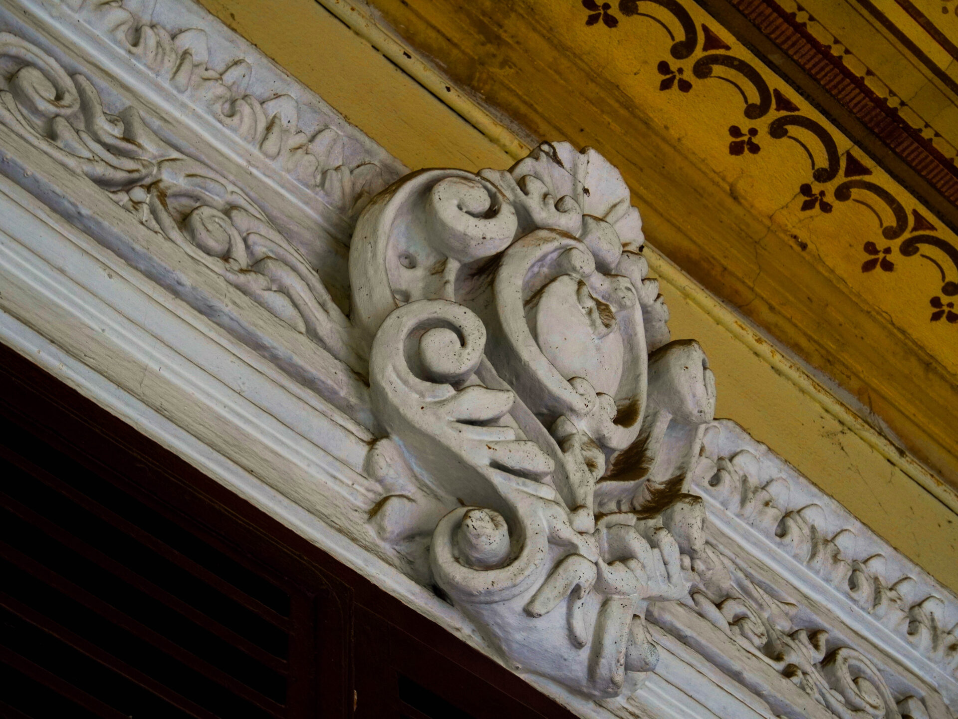 Στο κλειδί πάνω από την πόρτα βλέπουμε ακόμα τα αρχικά του ιδιοκτήτη A P, Avram Pelosov. Εκπληκτική υπήρξε η στέψη του κτιρίου της οποίας όμως μικρό μέρος διασώζεται σήμερα, αφού το πιο περίτεχνο κομμάτι χάθηκε στον σεισμό του 1978. Στο σημείο που δεν κατέρρευσε με τον σεισμό, ήταν ορατή η ημερομηνία κατασκευής του κτιρίου, δυστυχώς όμως δεν έγινε σωστή αποκατάσταση και άλλη μια λεπτομέρεια χάθηκε για πάντα.