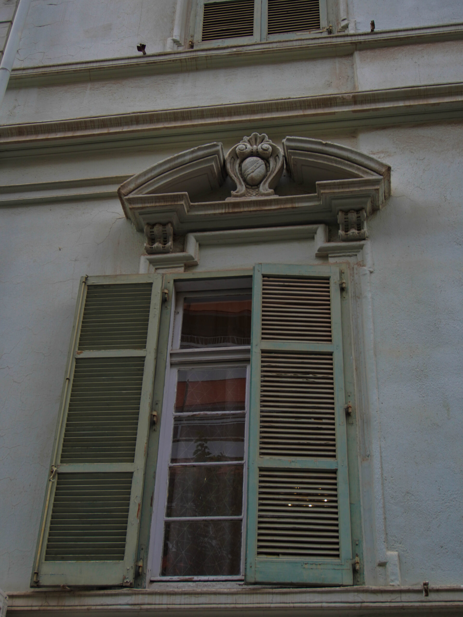 Εκτός των μεγάλων εξωστών πάνω από τις 2 εισόδους παρατηρούμε και μπαλκόνια σε κάθε άνοιγμα του 2ου ορόφου, με μεταλλικά, σκαλιστά κάγκελα και φουρούσια. Οι πορτοσιές των ανοιγμάτων έχουν σαφή αναφορά σε πύλες αρχαιοελληνικών ναών. Το οίκημα είναι απόλυτα συμμετρικό στις όψεις τόσο στον οριζόντιο όσο και στον κάθετο άξονα.