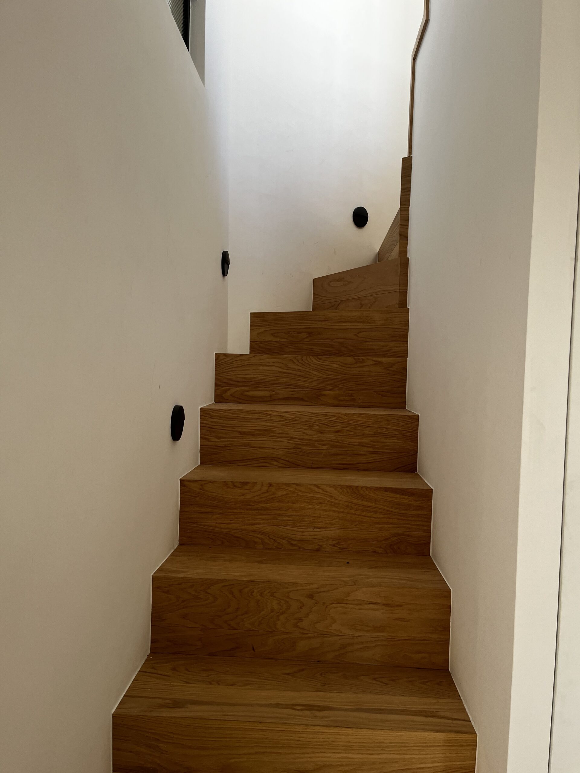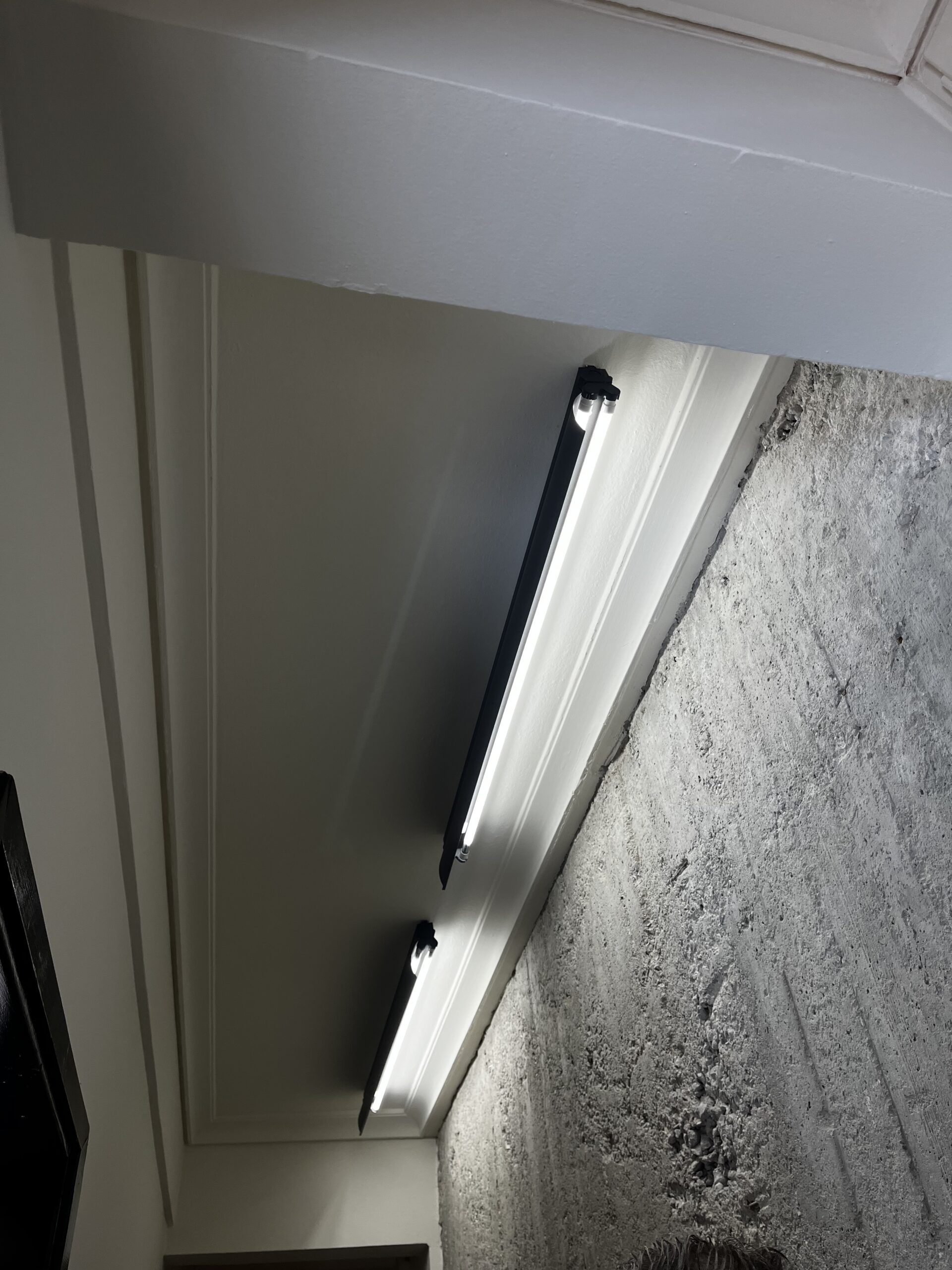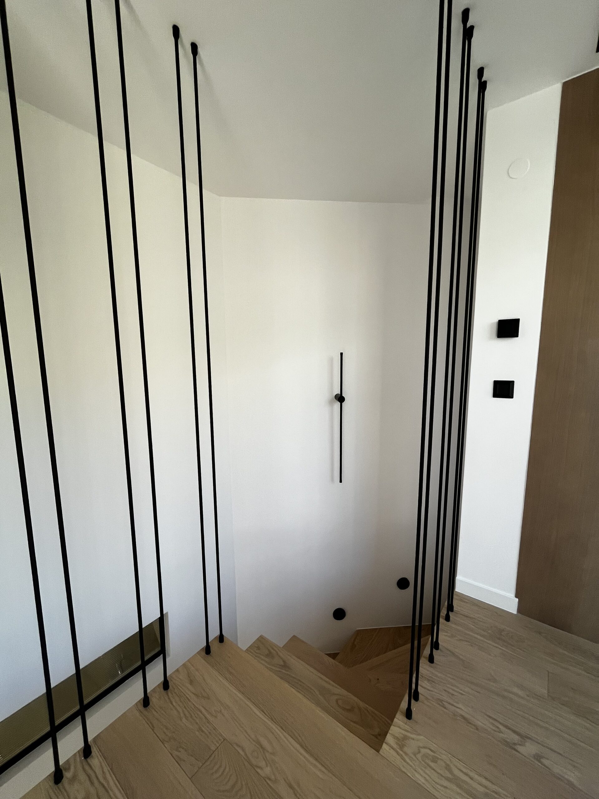 Ο διάδρομος έχει διαχωριστική τοιχοποιία για αισθητική λειτουργία, όπου αφού αφαιρέθηκε ο σοβάς, αποκαλύφθηκε το οπλισμένο σκυρόδεμα, το οποίο περάστηκε με ένα ματ βερνίκι αδιαβροχοποίησης, έτσι ώστε η υφή και η υλικότητα του τοίχου, που είναι λειτουργικό στοιχείο, να μετατραπεί σε αισθητικό. Οι δύο μπάρες που φωτίζουν τον διάδρομο από ψηλά, δίνουν ακόμα περισσότερη ένταση στην εικαστική επιλογή του αρχιτέκτονα.