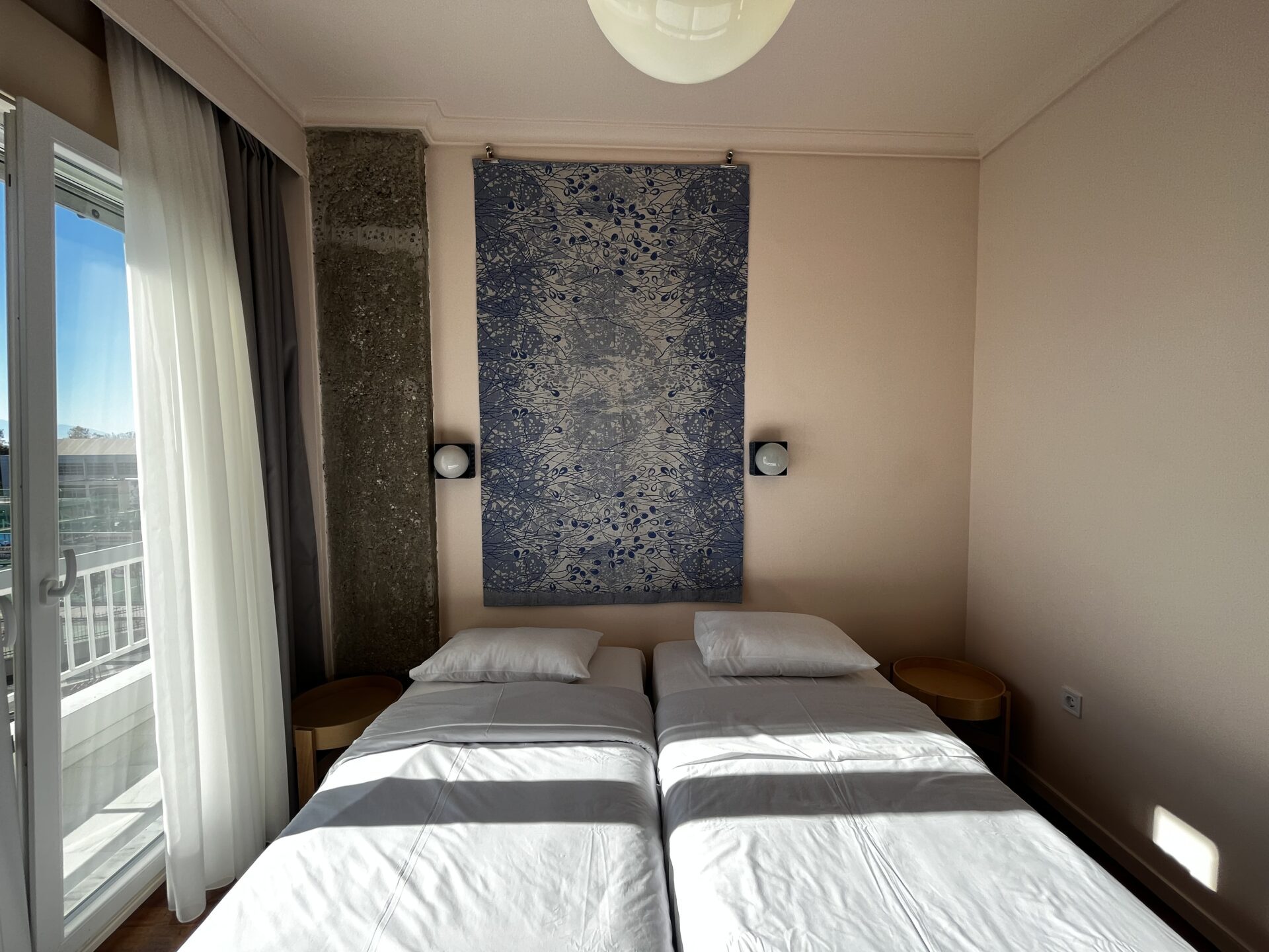 Τα δύο δωμάτια που βρίσκονται στο διαμέρισμα, με το απαλό ροζ χρώμα στους τοίχους, το κίτρινο χρώμα στον φωτισμό τους, την γαλάζια ταπετσαρία με λουλούδια, τον καθρέφτη από τη δεκαετία του ’70 και τις τύπου μεταξωτές κουρτίνες, δίνουν μία σέξι και ταυτόχρονα cozy, πολυτελή αίσθηση, που σε κάνει να θες να περάσεις όλη την ημέρα στο κρεβάτι, κοιτώντας την αστική θέα!