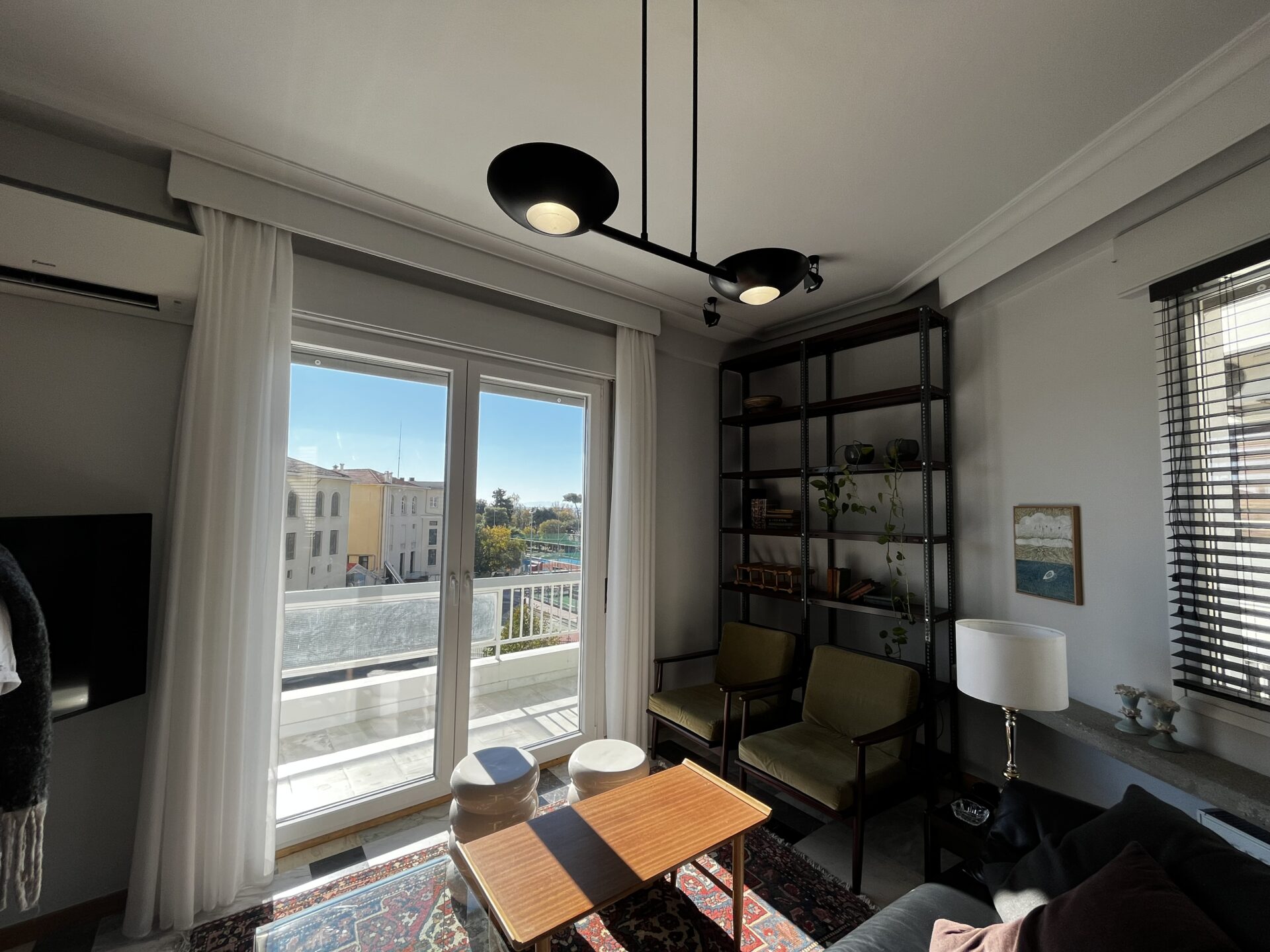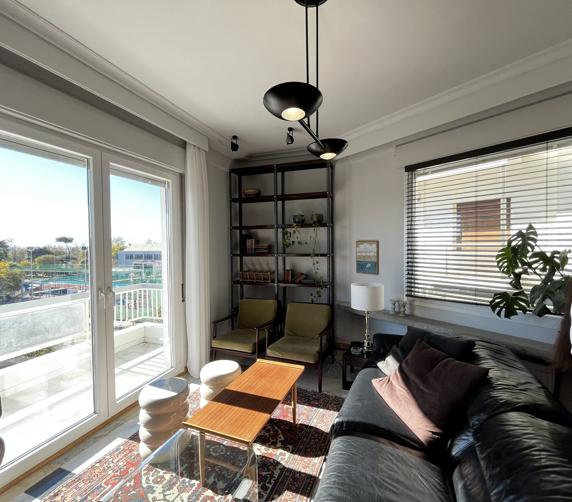 Ο μαύρος δερμάτινος καναπές από τη δεκαετία του 90, οι 50’s σουηδικές – μη παραδοσιακές καρέκλες και η θέα του κέντρου της Θεσσαλονίκης, με τον άπλετο ήλιο να «ζεσταίνει» τον ενιαίο χώρο του καθιστικού και της τραπεζαρίας, κάνουν το δωμάτιο ιδανικό για χαλάρωση, με τα πιο cozy vibes για τις ζεστές ημέρες του καλοκαιριού αλλά και τις κρύες νύχτες του χειμώνα!