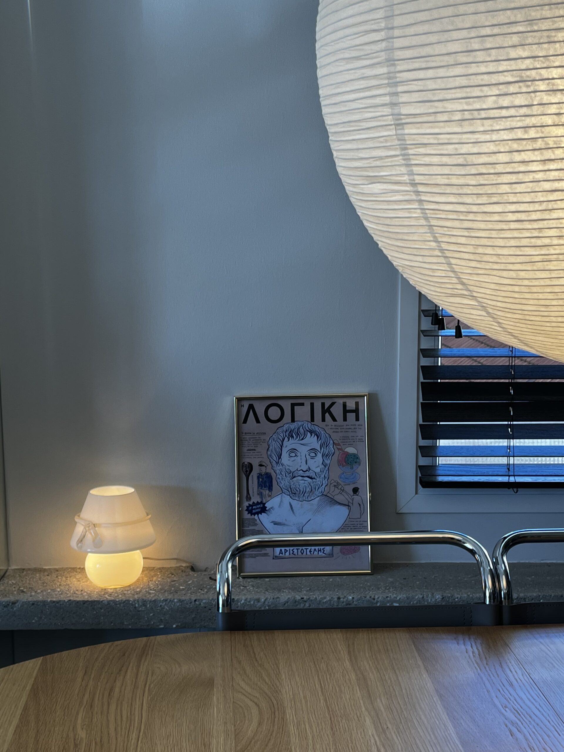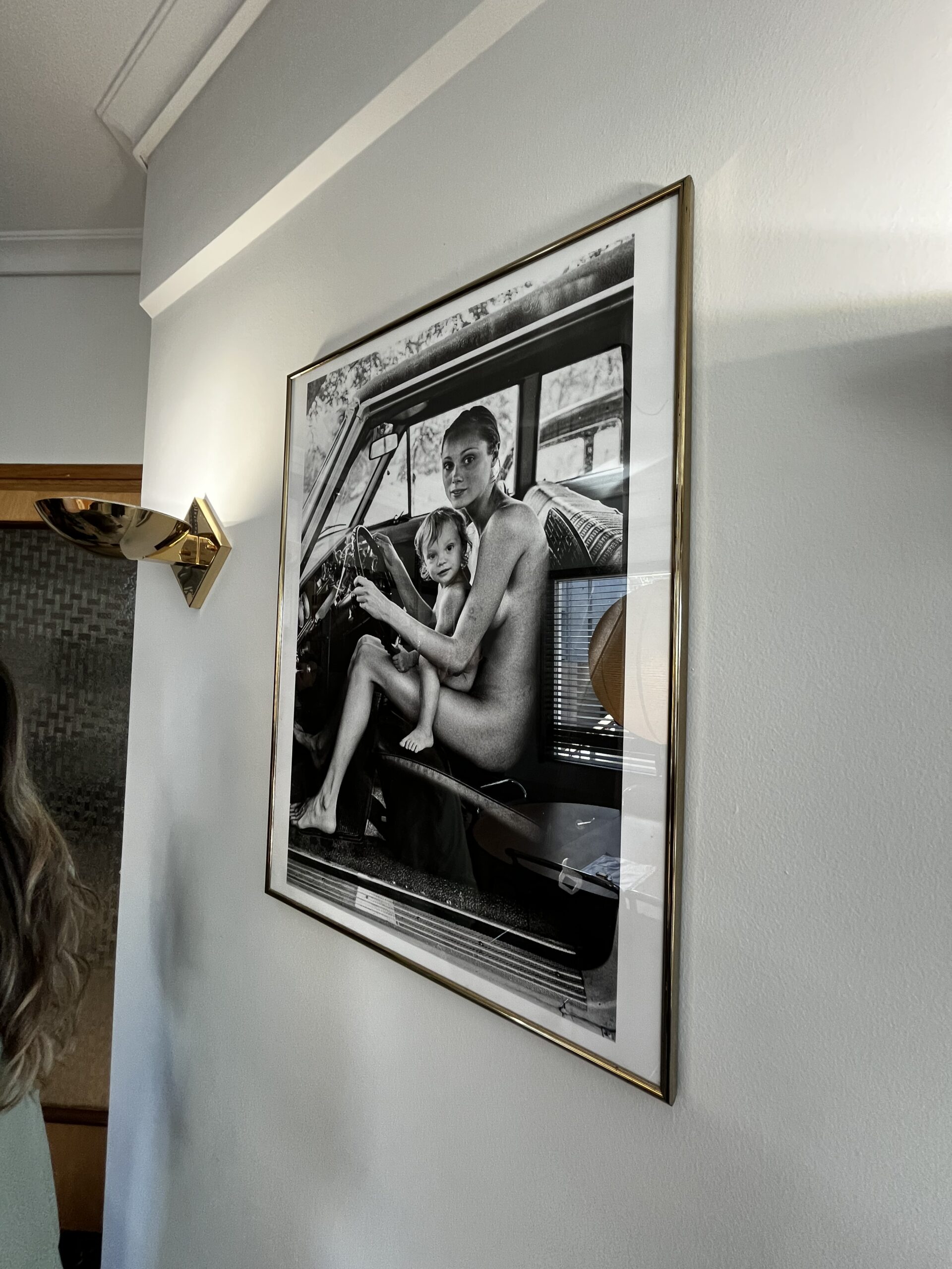 Την πρώτη αίσθηση στον χώρο παίρνεις απευθείας από την είσοδο σου σε αυτόν, με τα μάτια σου να στρέφονται στον διάδρομο, ο οποίος από τη μία πλευρά του εντυπωσιάζει με τον ανάγλυφο τοίχο του και από την άλλη με τις 70’s κρεμάστρες του, από ακρυλικό και μπρούτζο.