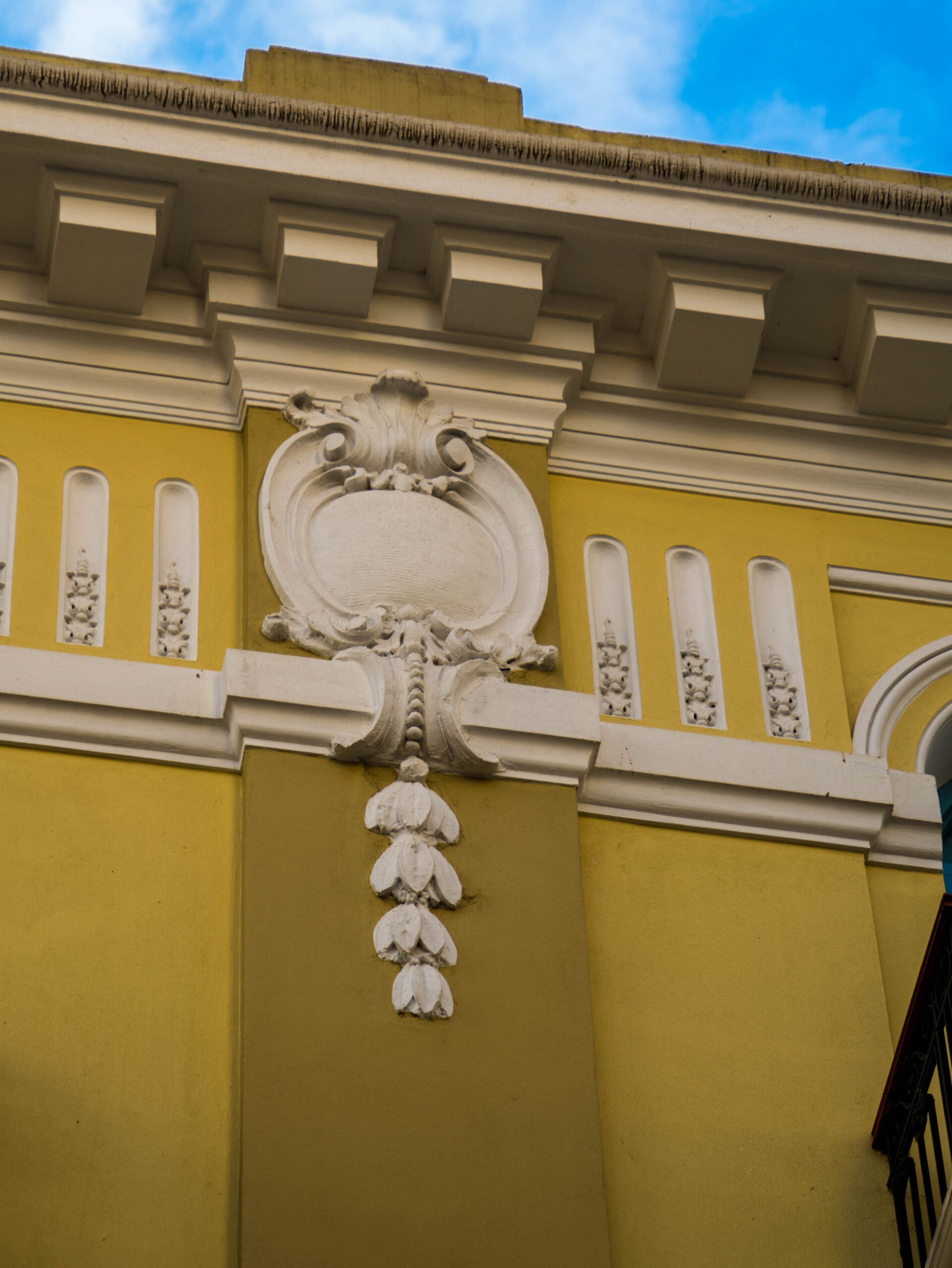 Η όψη του κτιρίου οργανώνεται σε τρία κάθετα τμήματα επί της οδού Βενιζέλου και σε τέσσερα επί της οδού Σολωμού. Μεταξύ των τμημάτων διαμορφώνονται ψευδοπεσσοί με ιωνικά επίκρανα. Το κτίριο στέφεται με περιμετρική κορωνίδα με πλαίσια και στυλίσκους. Πλούσια διακοσμημένο με περίτεχνα κιγκλιδώματα, φουρούσια, διακοσμητικά κλειδιά και ταινίες.