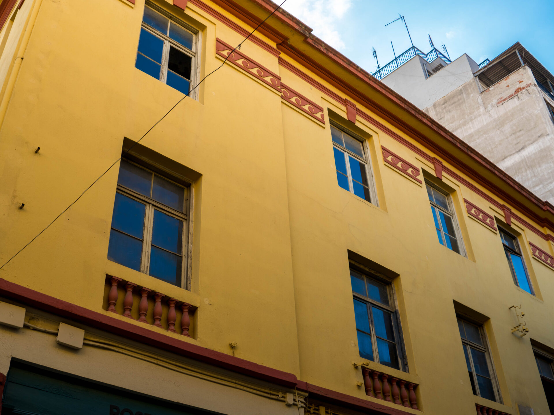 Χτίστηκε το 1925, σε σχέδια του Max Rubens για ξενοδοχειακή χρήση με το όνομα “Παρθενών” (΄Β Τάξης) για λογαριασμό των Κ. Παντατζίοβιτς και Γρ. Δημητριάδη. Έπεσε σε παρακμή μέχρι που πρόσφατα ανέλαβε νέα διεύθυνση και το μετέτρεψε σε youth hostel. Χαρακτηρίστηκε διατηρητέο το 1983.