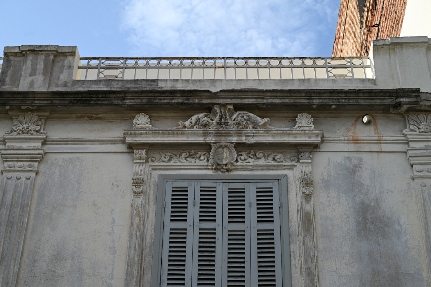 Επίσης είναι ένα από τα ελάχιστα κτίρια της πόλης, που διασώζουν μαντεμένιες κολώνες στήριξης. Η είσοδος βρίσκεται έκκεντρα τοποθετημένη στο ανατολικό τμήμα της όψης.
