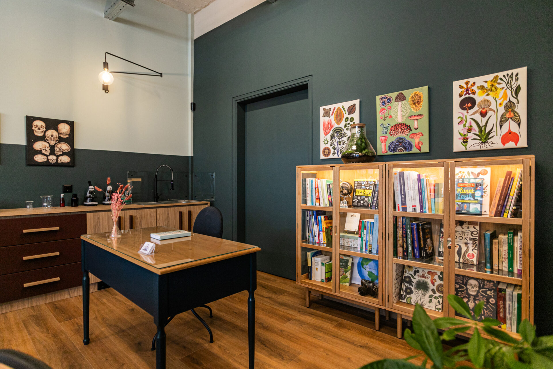 Τον σχεδιασμό και την υλοποίηση του χώρου ανέλαβε η αρχιτέκτονας Μαρία Ρεΐζη, με κεντρική ιδέα την ενσωμάτωση ενός εργαστηρίου επιστημών παλιάς εποχής σε συνδυασμό με μία σύγχρονη μαθητική τάξη.