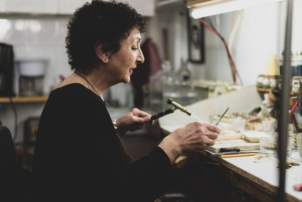 Το εργαστήριό της αποφάσισε να το στήσει στην Αυγερινού, το μικρό πλακόστρωτο στην πλατεία Άθωνος, ανάμεσα στους θρυλικούς εναπομείναντες τσαγκάρηδες και τις ταβέρνες.