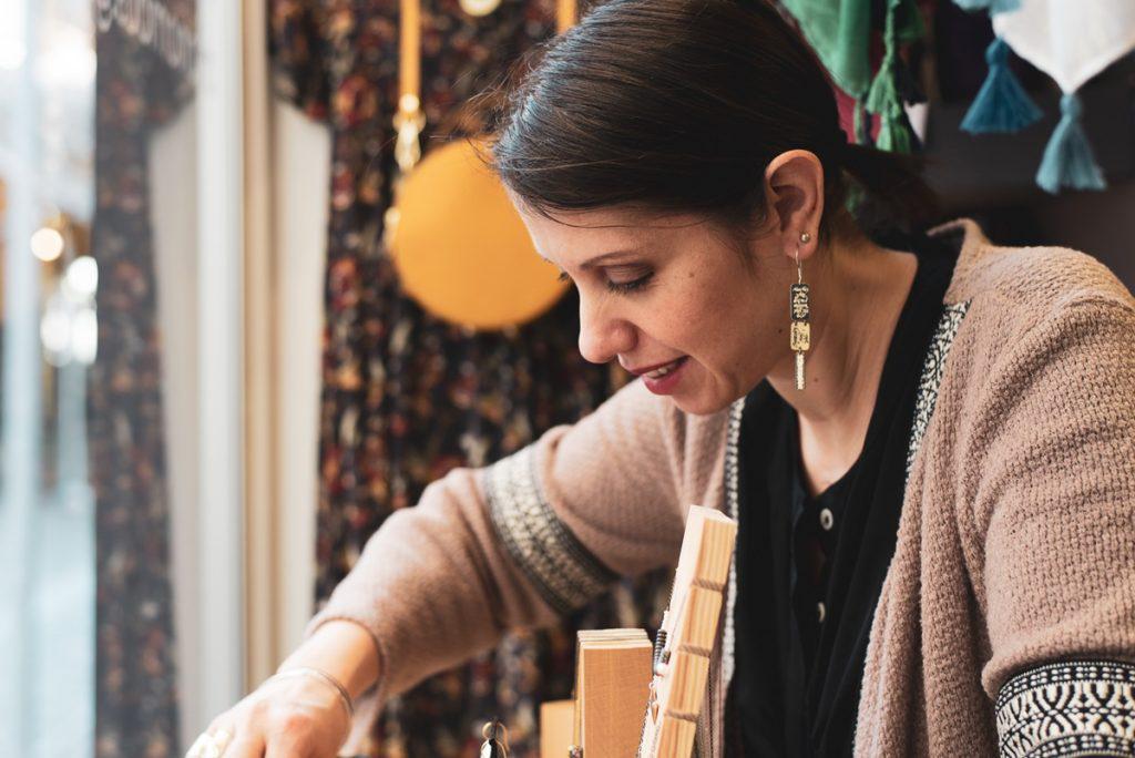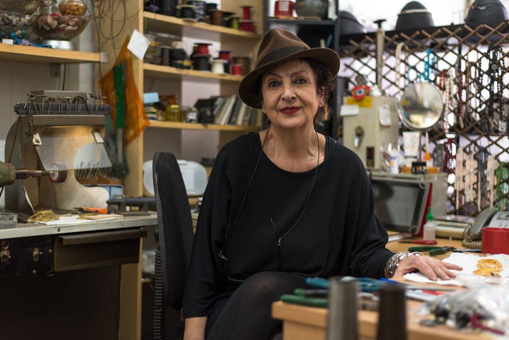 «To σημείο το επέλεξα γιατί είμαι περισσότερο του εργαστηρίου. Όταν επέλεξα να μεταφερθώ από τον όροφο που μου ήμουν πριν, θα μπορούσα να είχα πάει σε ένα ανοιχτό σημείο, στην Τσιμισκή για παράδειγμα. Δεν το ήθελα με τίποτα γιατί δεν είμαι της βιτρίνας είμαι του πάγκου. Δεν είμαι επαγγελματίας πωλήτρια. Ήθελα να έχω μια μικρή βιτρίνα, έτσι, για το γαμώτο μου. Δουλεύω χοντρική έτσι και αλλιώς. Την λάτρευα αυτή την γειτονιά από την πρώτη μέρα που ήρθα Θεσσαλονίκη, πριν από 35 χρόνια. Την περπατούσα πάρα πολύ αυτή την περιοχή. Μου άρεσε η ατμόσφαιρα πολύ, πολύ. Αυτή η ατμόσφαιρα με συγκινεί πάρα πολύ. Με ανεβάζει ρε παιδί μου. Αυτό το πράγμα που τώρα βλέπω απέναντι ή δίπλα, με τα καλάθια στον δρόμο και τους πάγκους εργασίας, εμένα με απογειώνει. Κάποιον άλλον τον τρελαίνει. Εμένα μ’αρέσει, αυτό είναι το χρώμα αυτού του δρόμου. Αυτή η αναρχία που υπάρχει και έρχεται και μπλέκει με τους νέους ανθρώπους. Με τρελαίνει.»