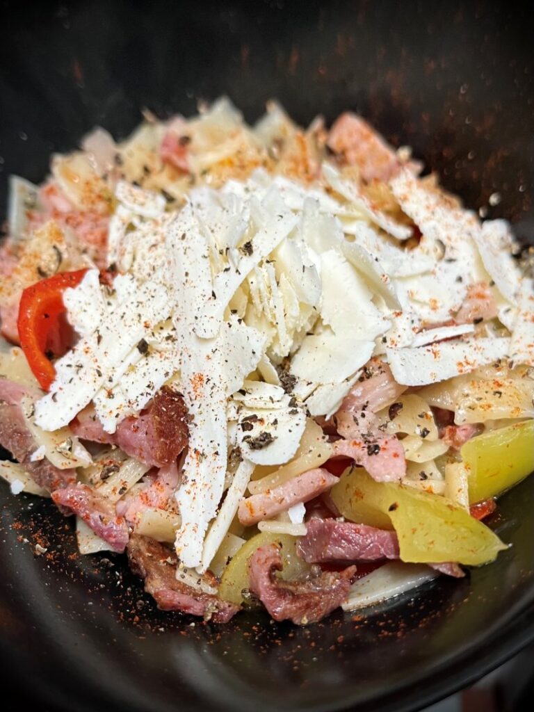 Τον τραχανά -τον απλώνουν στο χωριό στην Πελοπόννησο τα καλοκαίρια- τον απολαμβάνουμε μέχρι την τελευταία κουταλιά, ενώ οι χυλοπίτες που έφτιαξαν φέτος το καλοκαίρι, πρωταγωνιστούν σε μία νέα προσθήκη του μενού, με καπνισμένο σύγκλινο, λεπτές φετούλες ξηρής μυζήθρας Μάνης και φρεσκοκομμένα λαχανικά, τόσο μαμαδίστικο και τόσο γευστικό!