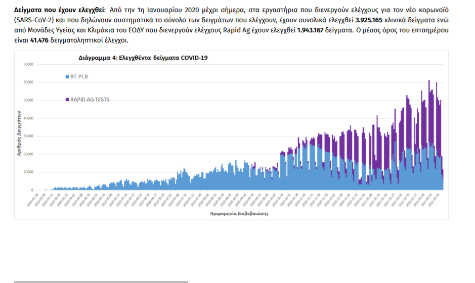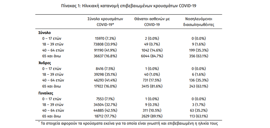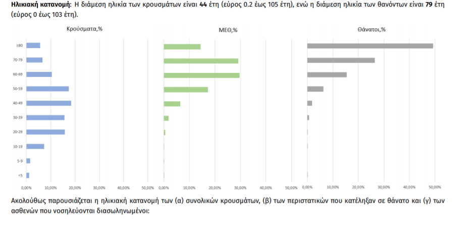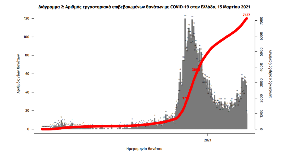 Οι νέοι θάνατοι ασθενών με COVID-19 είναι 46, ενώ από την έναρξη της επιδημίας έχουν καταγραφεί συνολικά 7.137 θάνατοι. Το 95.8% είχε υποκείμενο νόσημα ή/και ηλικία 70 ετών και άνω.