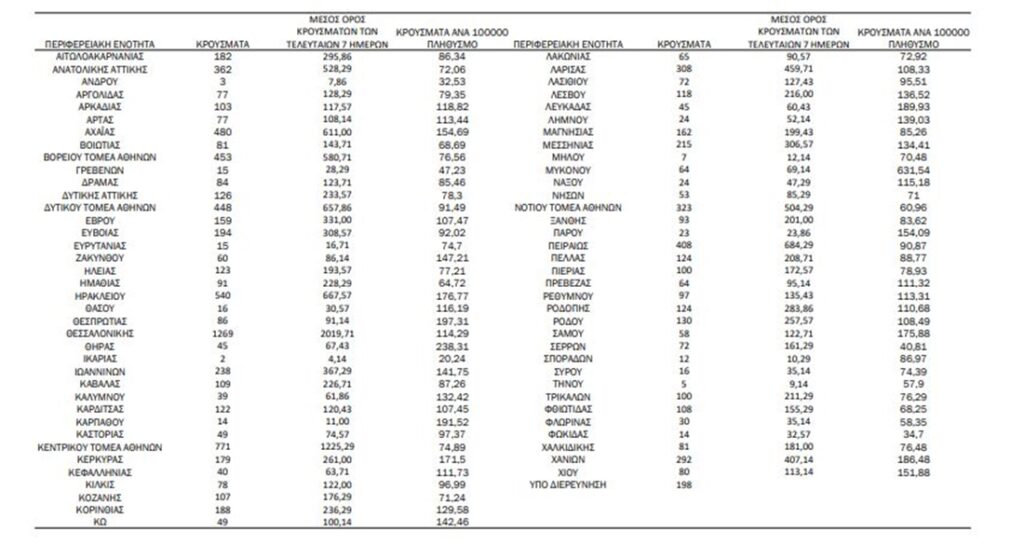 Ειδικότερα, στην Αττική τα κρούσματα κατανέμονται ως εξής: