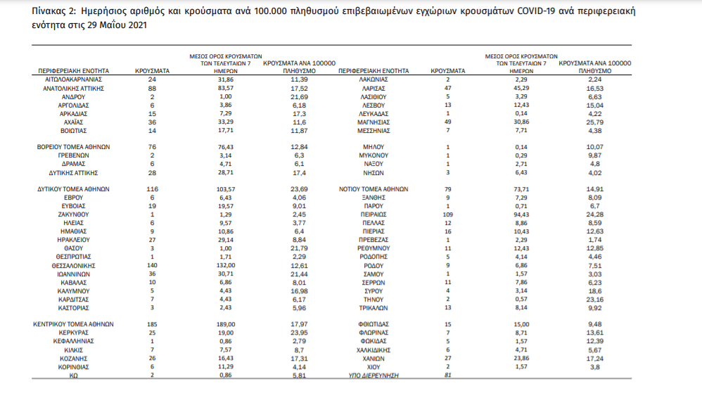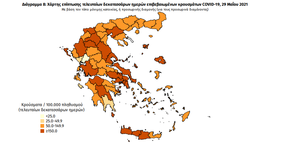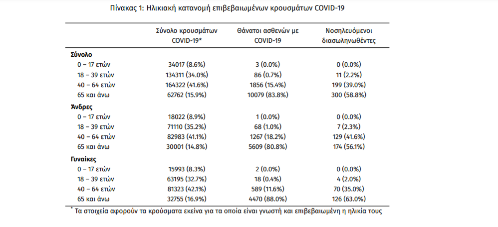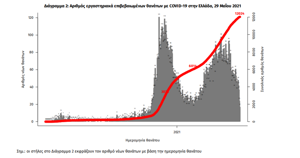 Οι νέοι θάνατοι ασθενών με COVID-19 είναι 29, ενώ από την έναρξη της επιδημίας έχουν καταγραφεί συνολικά 12.024 θάνατοι. Το 95.2% είχε υποκείμενο νόσημα ή/και ηλικία 70 ετών και άνω.