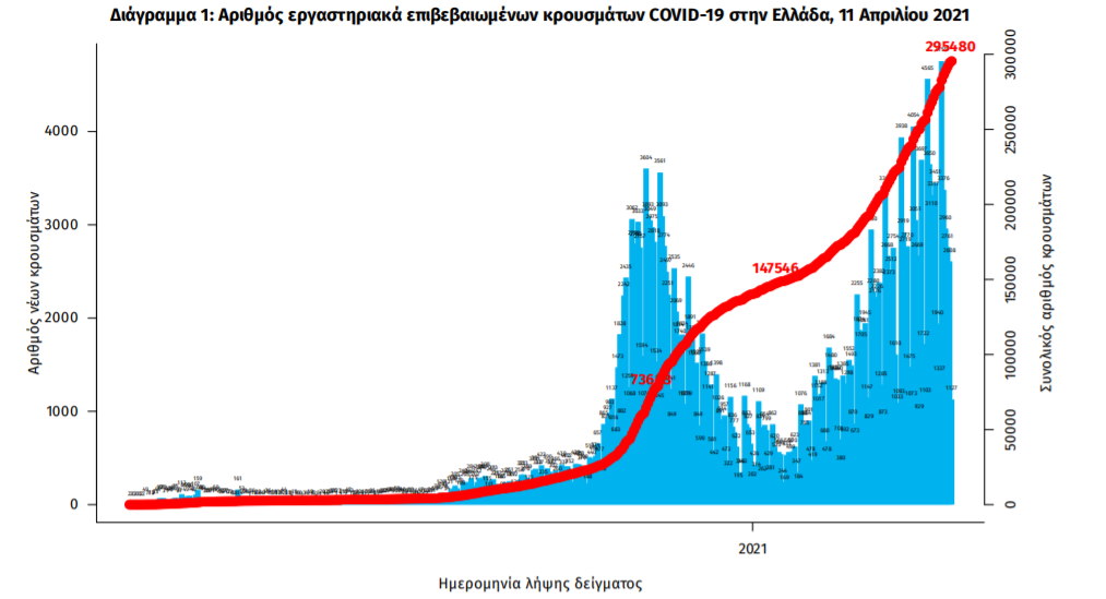 Αναλυτικότερα ο ΕΟΔΥ ανακοίνωσε τα νέα εργαστηριακά επιβεβαιωμένα κρούσματα της νόσου που καταγράφηκαν τις τελευταίες 24 ώρες είναι 1.718, εκ των οποίων 3 εντοπίστηκαν κατόπιν ελέγχων στις πύλες εισόδου της χώρας. Ο συνολικός αριθμός των κρουσμάτων ανέρχεται σε 295.480 (ημερήσια μεταβολή +0.6%), εκ των οποίων 51.4% άνδρες. Με βάση τα επιβεβαιωμένα κρούσματα των τελευταίων 7 ημερών, 63 θεωρούνται σχετιζόμενα με ταξίδι από το εξωτερικό και 3.067 είναι σχετιζόμενα με ήδη γνωστό κρούσμα.