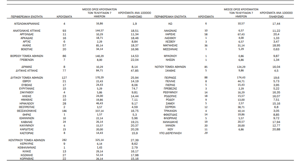 Όσα ανακοίνωσε ο ΕΟΔΥ.