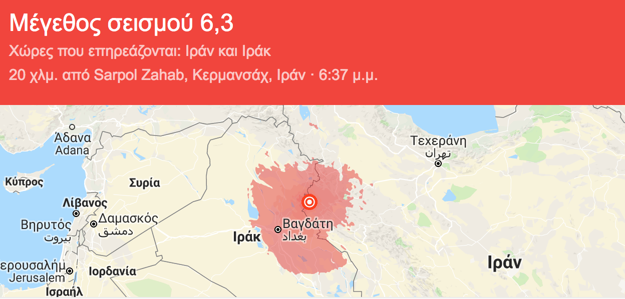Η σεισμική δόνηση έγινε αισθητή στην πρωτεύουσα του Ιράκ, τη Βαγδάτη και στο Κουβέιτ.