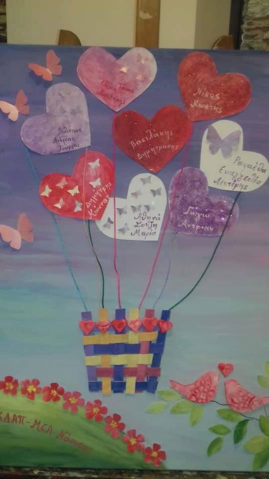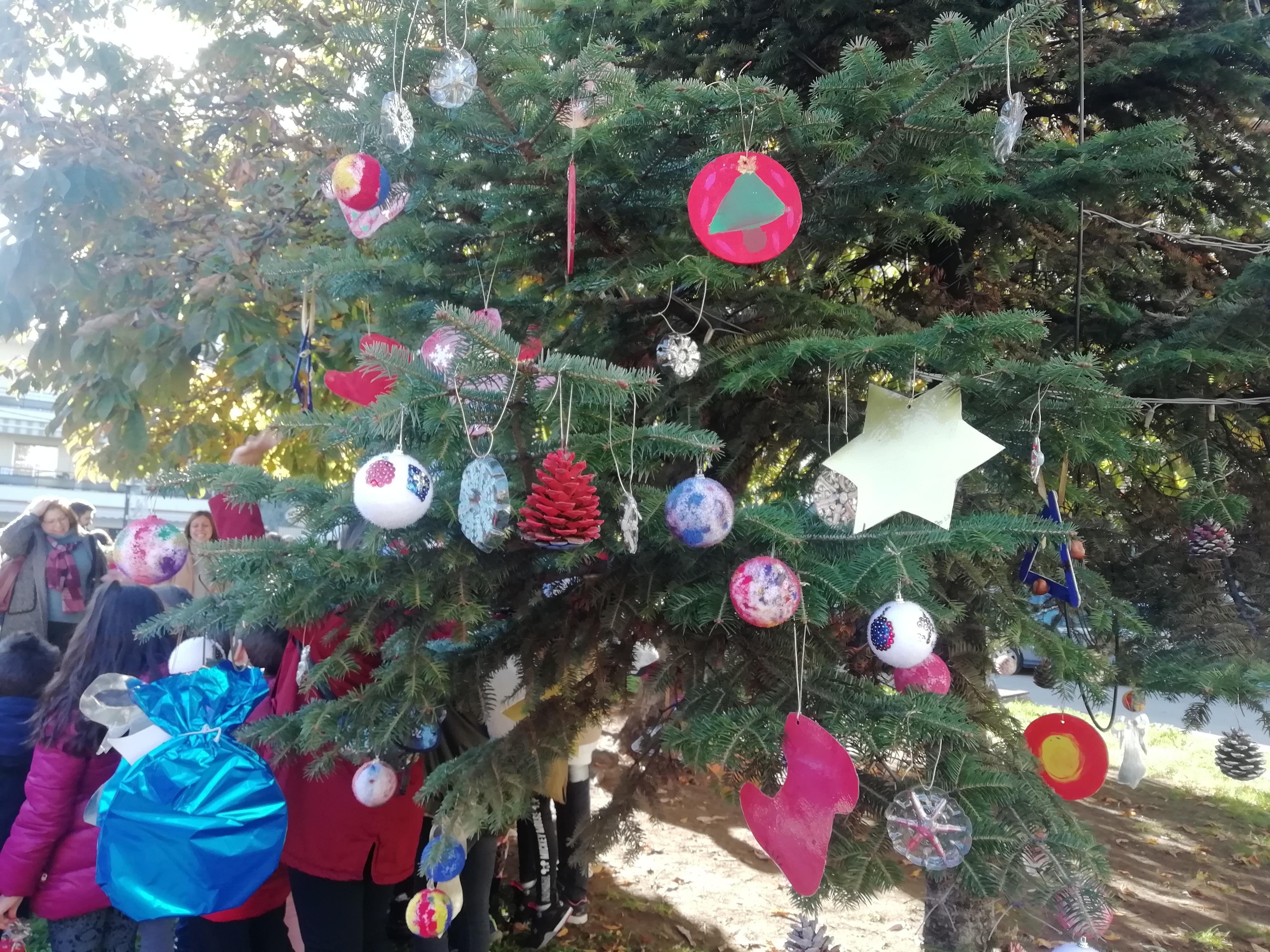 Με στολίδια που είχαν φτιάξει τα παιδιά στο σχολείο.