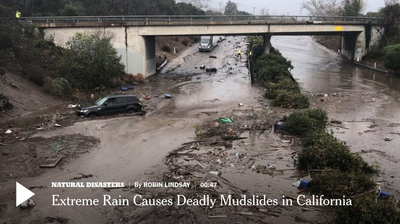 Οι περισσότερες από τις περιοχές που σαρώθηκαν από τις κατολισθήσεις λάσπης είχαν πληγεί τον Δεκέμβριο από την πυρκαγιά «Τόμας», που κατέκαψε τη μεγαλύτερη έκταση στην ιστορία της Πολιτείας της Καλιφόρνιας. Δεν υπάρχει πλέον αρκετή βλάστηση για να απορροφά το νερό, να συγκρατεί το έδαφος και να προστατεύει τους οικισμούς της περιοχής.