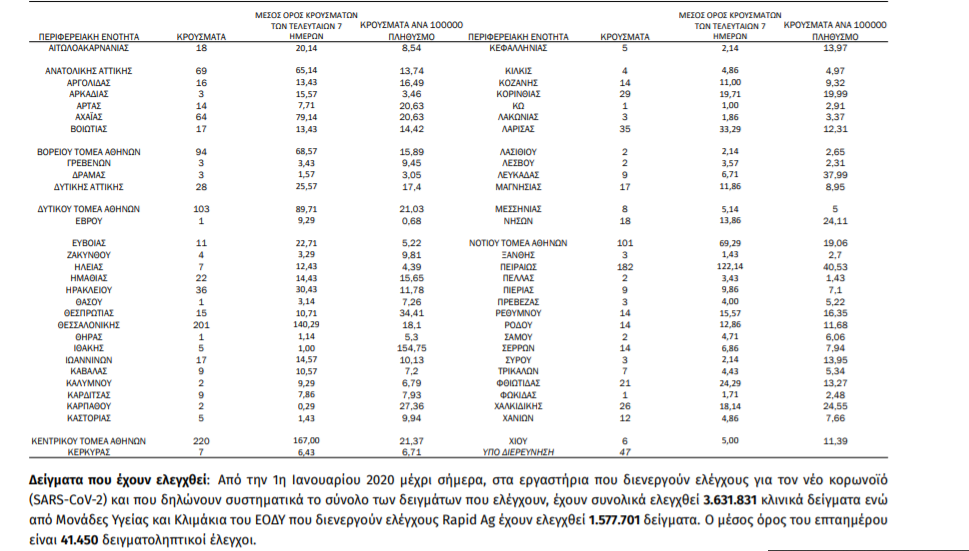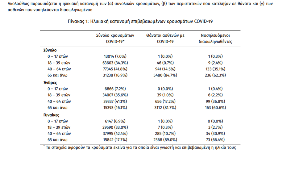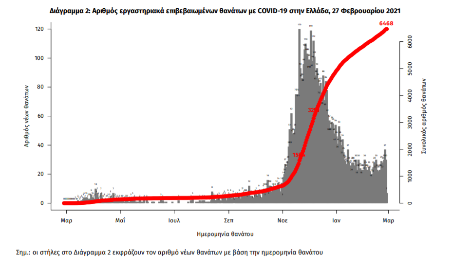 Οι νέοι θάνατοι ασθενών με COVID-19 είναι 29, ενώ από την έναρξη της επιδημίας έχουν καταγραφεί συνολικά 6.468 θάνατοι. Το 95.7% είχε υποκείμενο νόσημα ή/και ηλικία 70 ετών και άνω.