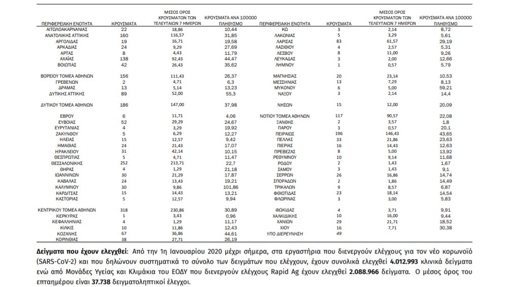 Ανακοινώθηκαν τα νέα κρούσματα κοροναϊού στην Ελλάδα από τον Εθνικό Οργανισμό Δημόσιας Υγείας. Διαβάστε αναλυτικά την επίσημη ανακοίνωση:
